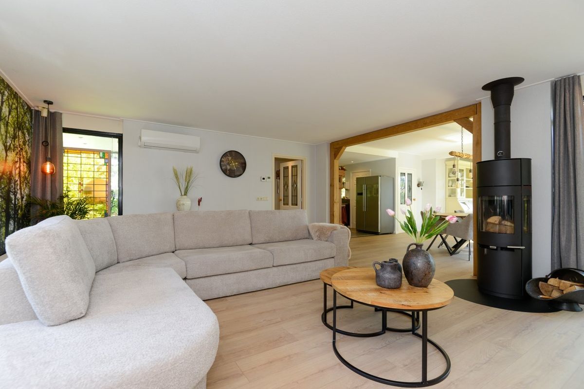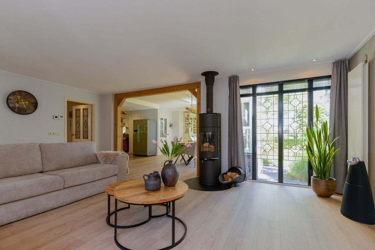 Karakteristieke vrijstaande woning met riante uitbouw aan de achterzijde van de woning. De uitbouw met luxe uitstraling heeft openslaande tuindeuren en biedt volop woon-en leef ruimte. De houtkachel in de woonkamer zorgt voor extra sfeer. De woning is onder architectuur verbouwd en de tuin is een ontwerp van tuinarchitect Rob Verlinden. Een ware eyecatcher - een plek waar design en natuur samenkomen.