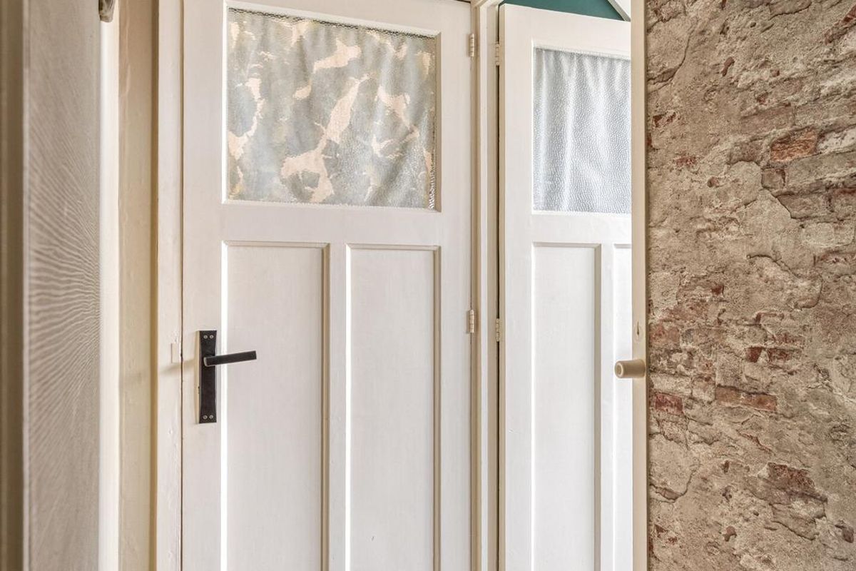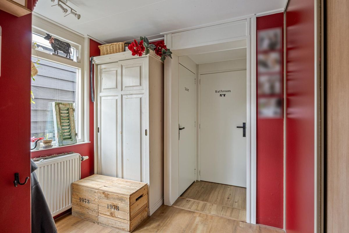 * Tussenhal voorzien van PVC vloer, modern zwevend toilet (2024) en vaste kast met opstelling CV-ketel en aansluiting wasmachine-/droger.