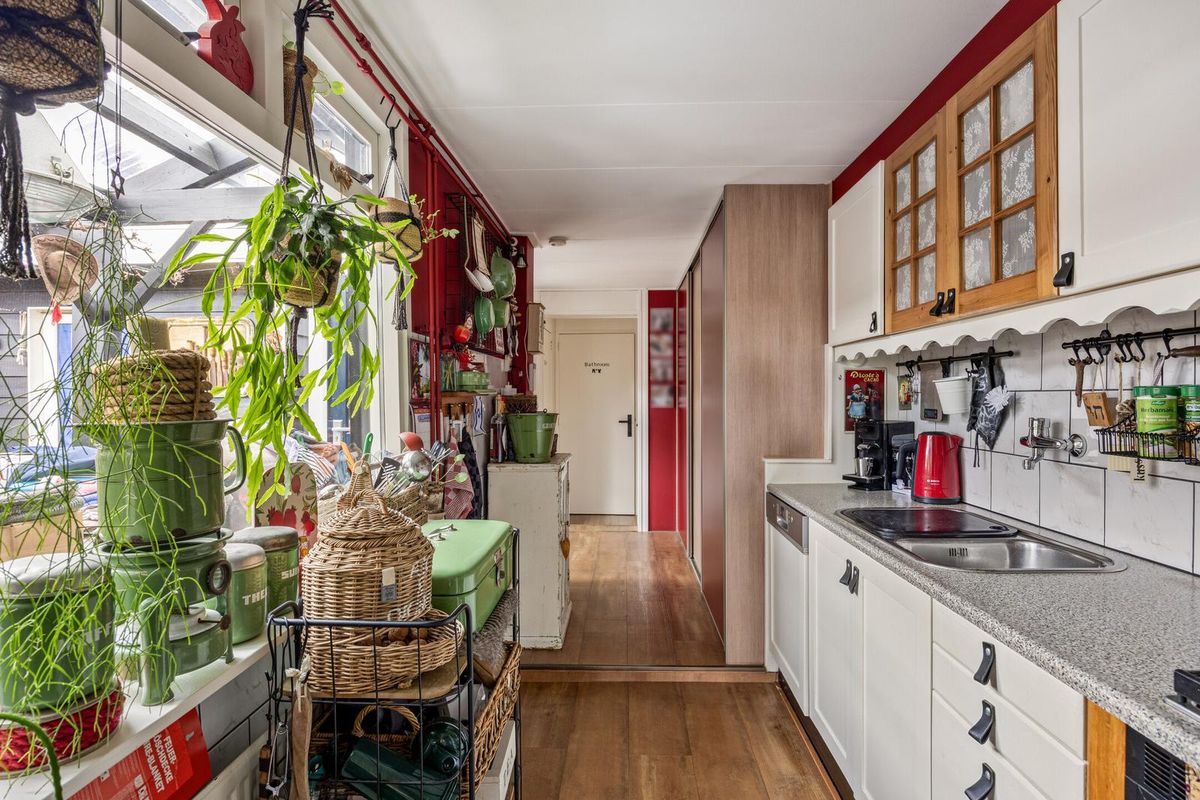 * Halfopen keuken van ca. 6 m2 voorzien van PVC vloer, gasfornuis met afzuigkap, oven en vaatwasmachine.