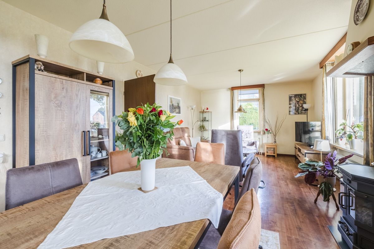 De lichte woonkamer is sfeervol en voorzien van een kachel, wat zorgt voor een warme uitstraling. De aangrenzende woonkeuken is uitgerust met diverse inbouwapparatuur en sluit goed aan op het dagelijkse wooncomfort. Verder beschikt de woning over 5 slaapkamers waarvan 1 op de begane grond!
