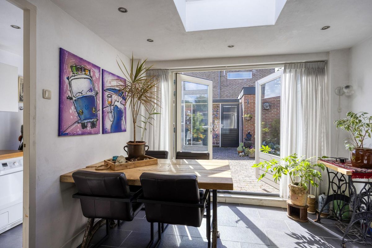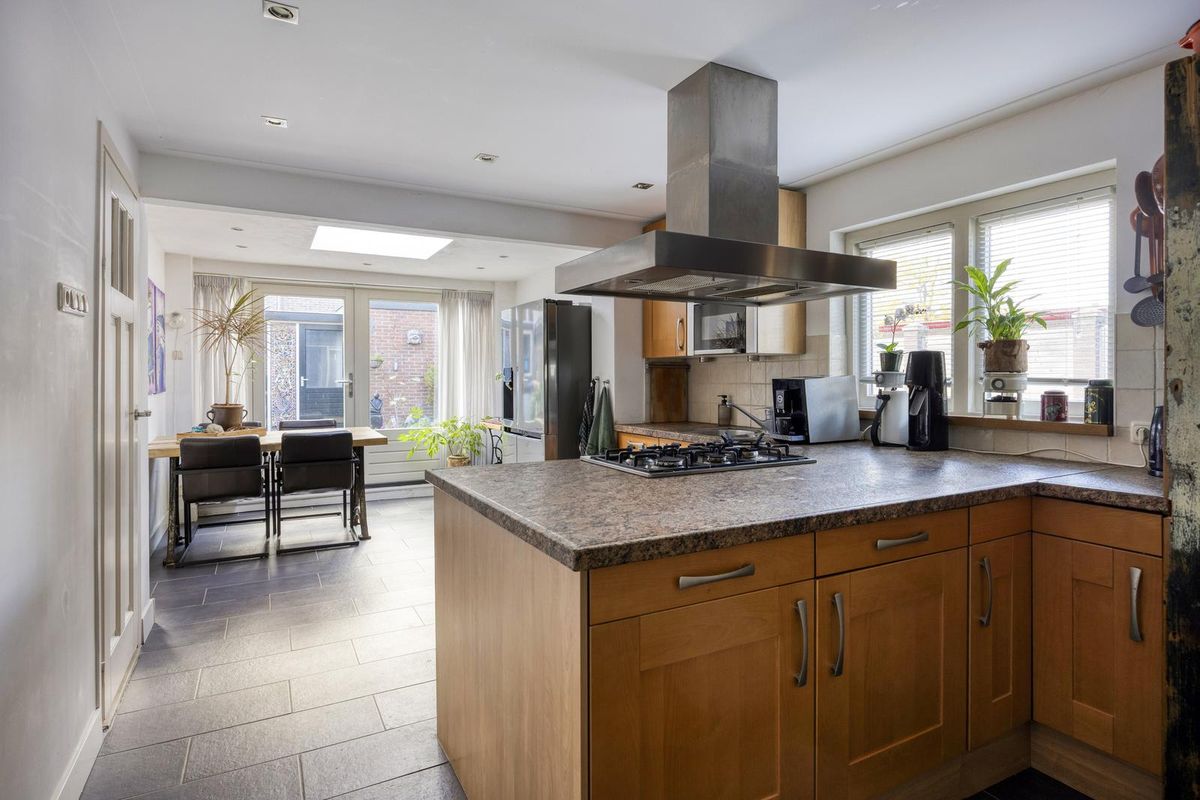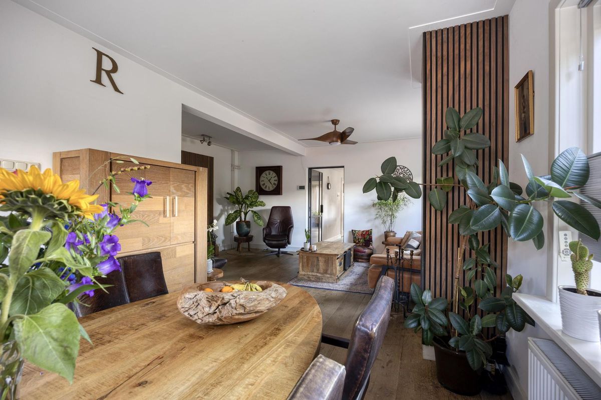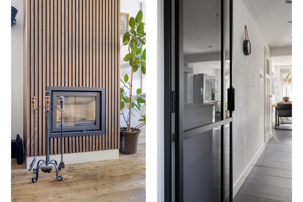 Via de hal, waar je de meterkast, het toilet en de trap naar boven aantreft, kom je binnen in de woonkamer. De fraaie parketvloer en de open haard (met nieuw rookkanaal) met houten omlijsting geven de ruimte een warme en sfeervolle uitstraling. Dankzij de erker aan de voorzijde en de ramen aan de zijkant valt er volop daglicht naar binnen. De woonkamer biedt plaats voor een royale zithoek en een eettafel, en er blijft zelfs nog voldoende ruimte over voor een aparte werk-, lees- of speelhoek.