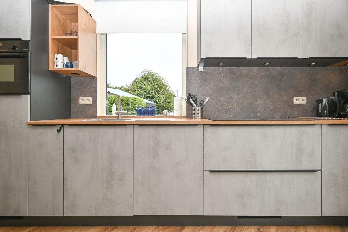 De entree komt uit in de hal, van waaruit u toegang heeft tot zowel de badkamer als de praktische bijkeuken. Via een korte gang, enkele treden hoger, komt u in de lichte woonkamer met open keuken.