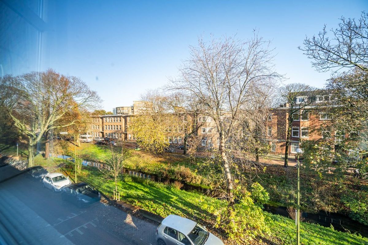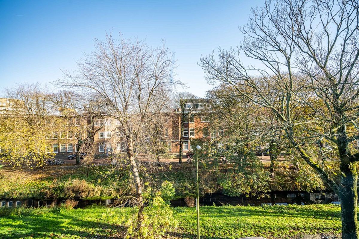 Sfeervol en licht vierkamerappartement met vrij uitzicht, gelegen aan een brede groene kade