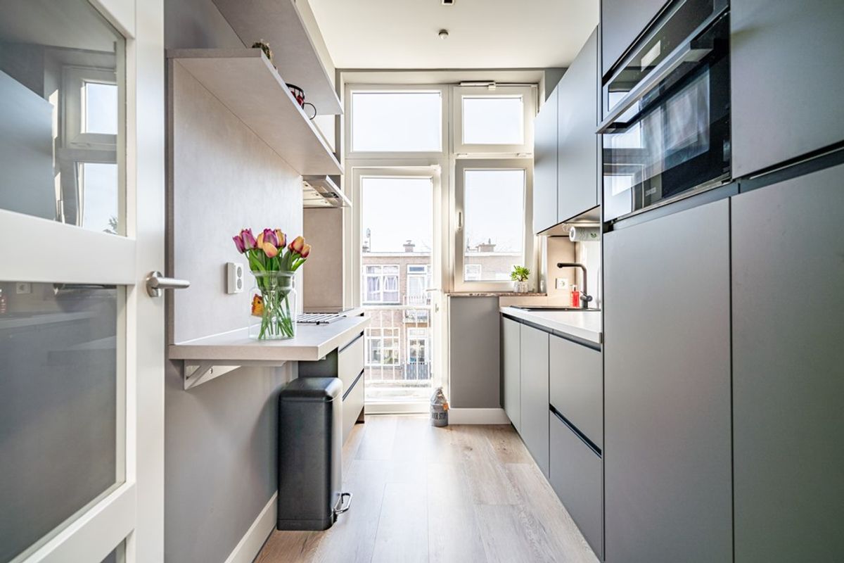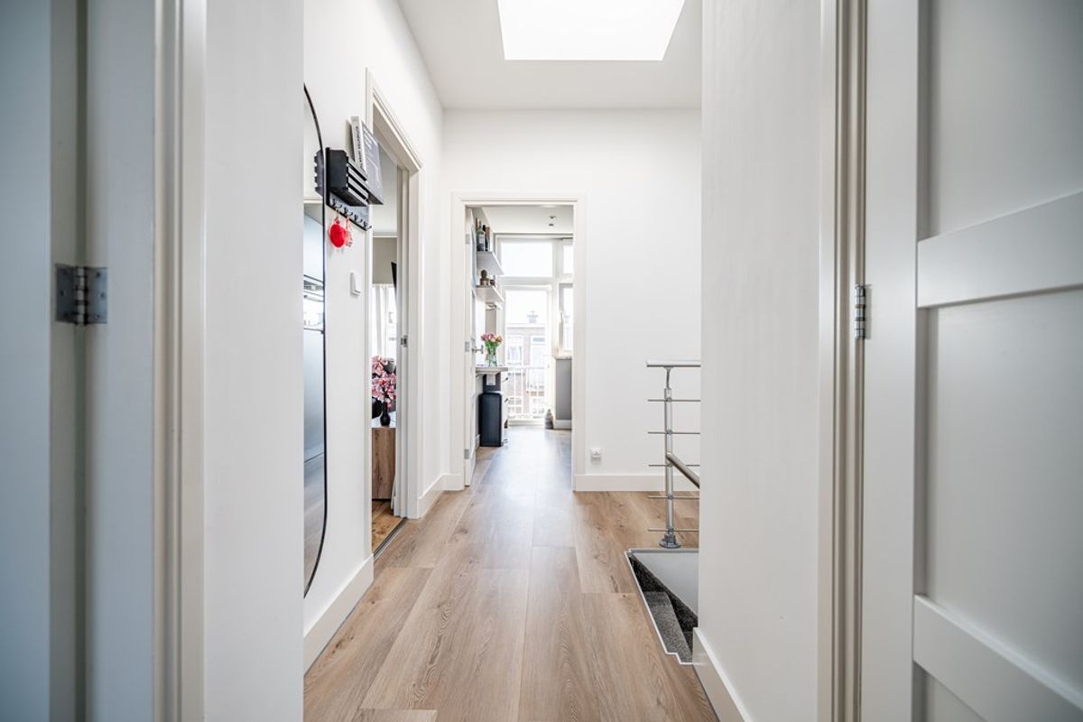 Dit royale en lichte vierkamerappartement is gelegen op de bovenste verdieping en biedt zowel aan de voor- als achterzijde vrij uitzicht. De hoge plafonds en de twee dakramen zorgen voor een ruimtelijk, licht en open karakter. Met een verzorgde keuken, nette badkamer en een zonnig balkon op het zuidwesten is dit een heerlijk appartement op een aantrekkelijke en centrale locatie.