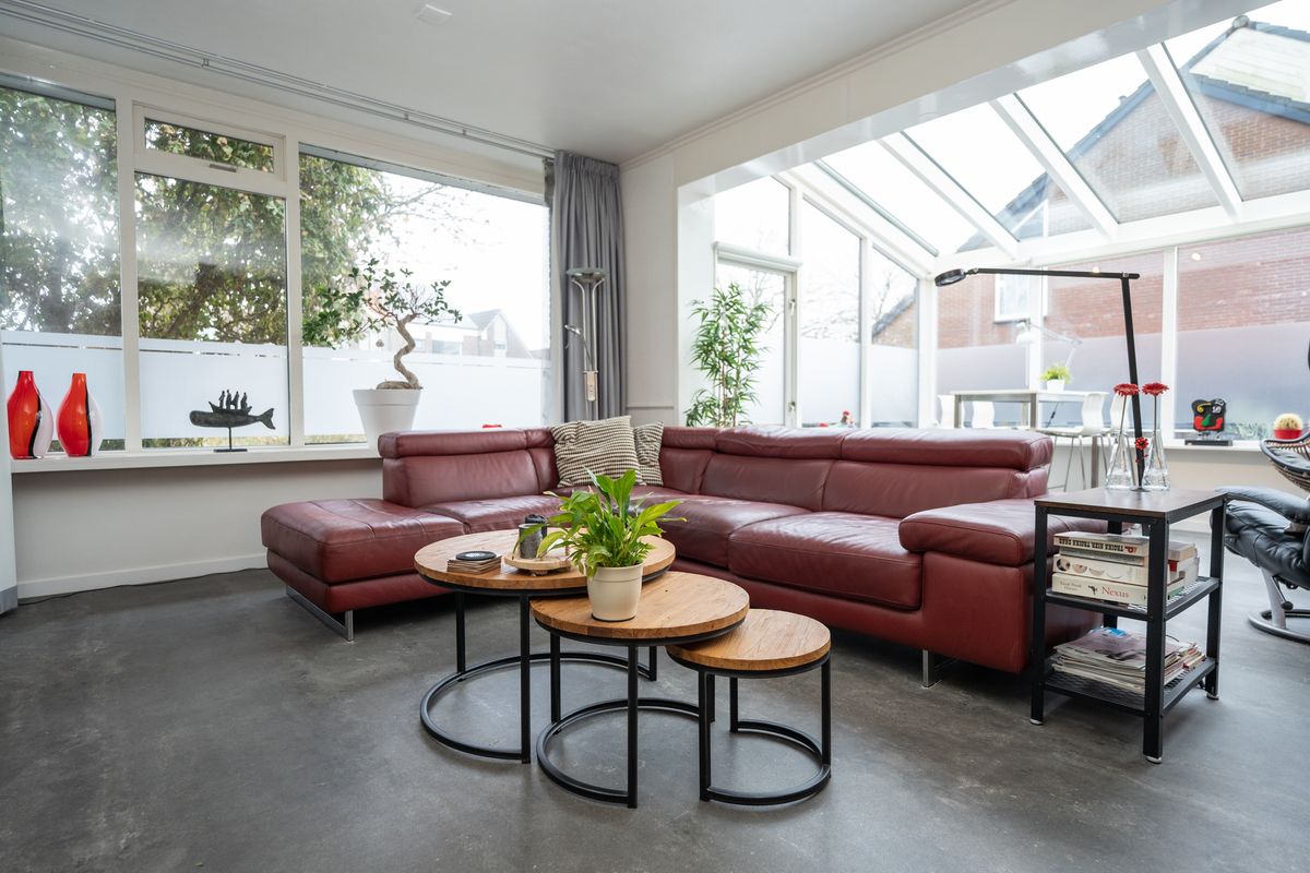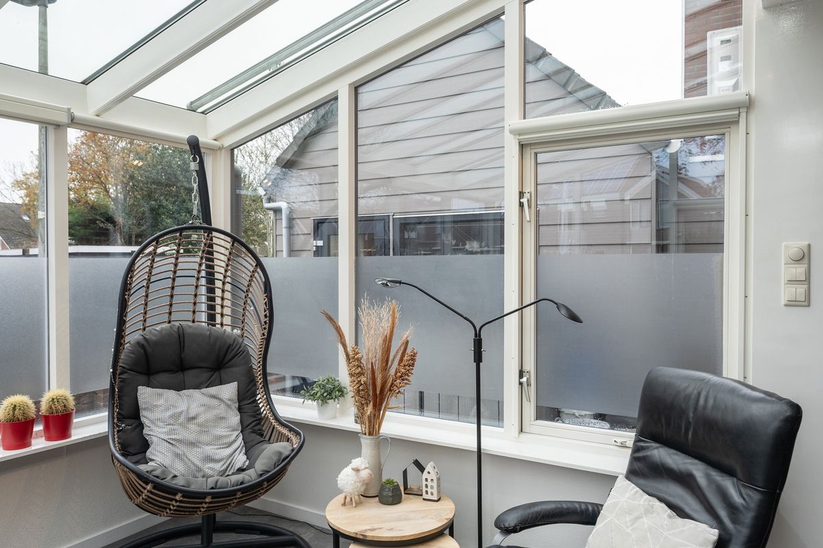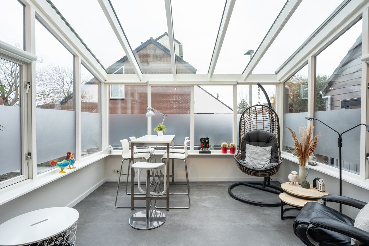Aansluitend aan de woonkeuken tref je via de schuifpui de sfeervolle wintertuin. Een echte meerwaarde: dankzij de elektrische haard geniet je hier het hele jaar door van warmte en gezelligheid. Bovendien is er een charmante overkapping aanwezig, waardoor je ook met minder weer comfortabel buiten kunt zitten.