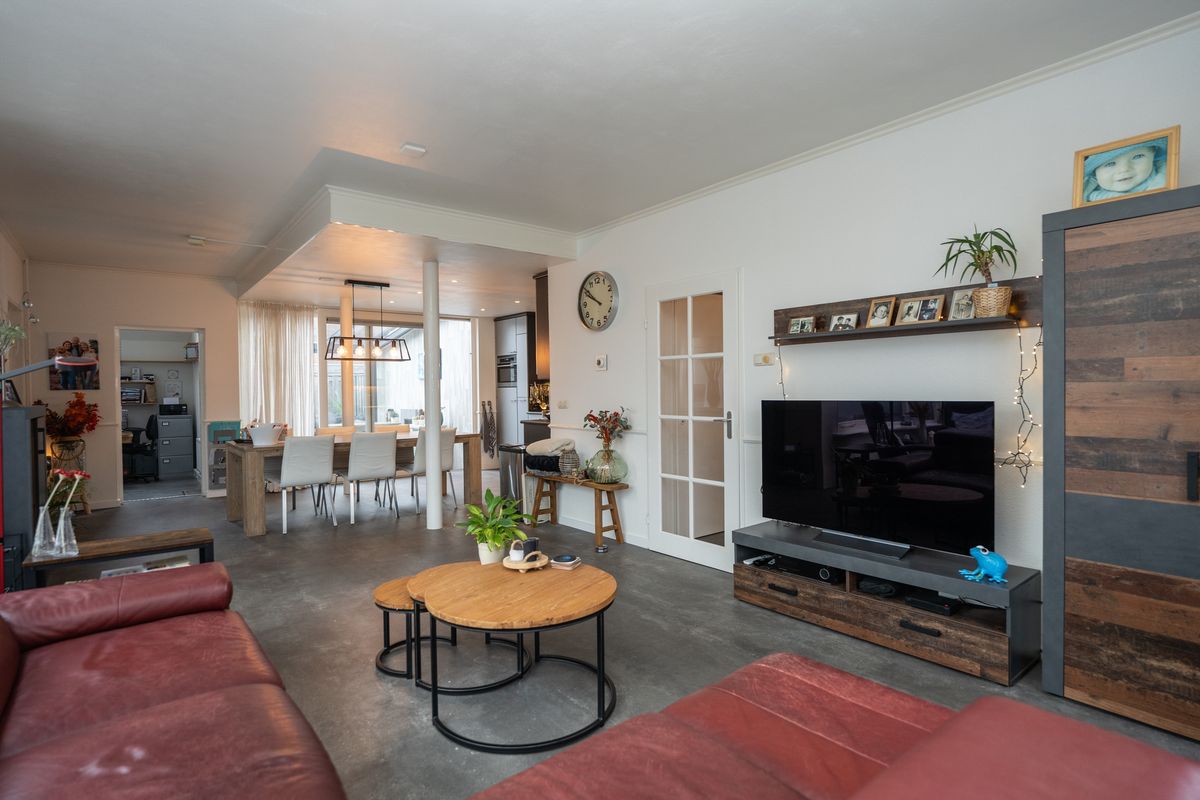 Via de nette entree aan de voorzijde stapt je binnen in de ruime hal met trapopgang, trapkast en een royale meterkast/bergkast, praktisch en overzichtelijk ingericht. De woonkamer biedt direct een ‘wauw-effect’. Door de uitbouw met grote glaspartijen baadt de living in het licht, wat zorgt voor een heerlijk open en luxe sfeer. Het elektrisch zonnedoek (2x) garandeert comfort op zonnige dagen.