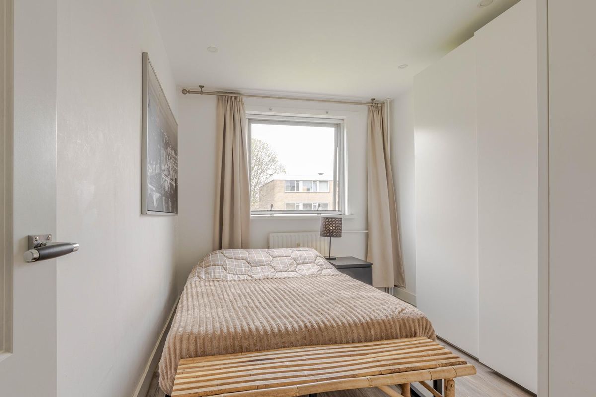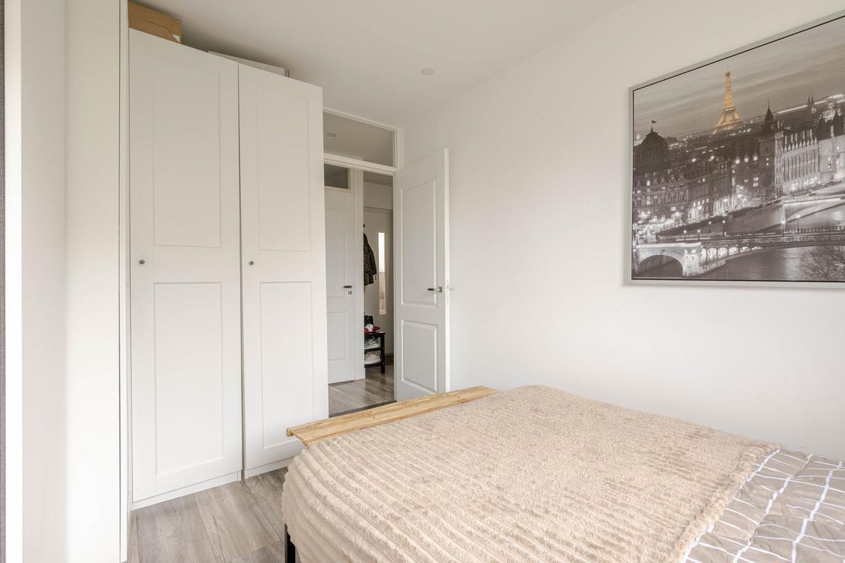 * Slaapkamer aan de achterzijde, voorzien van laminaatvloer, gestuukte wanden, plafond met inbouwspots en vaste kasten.