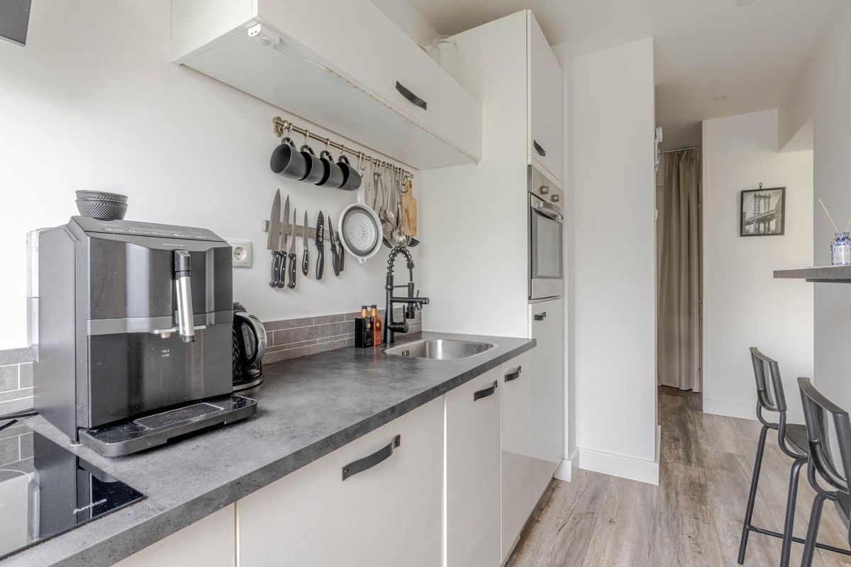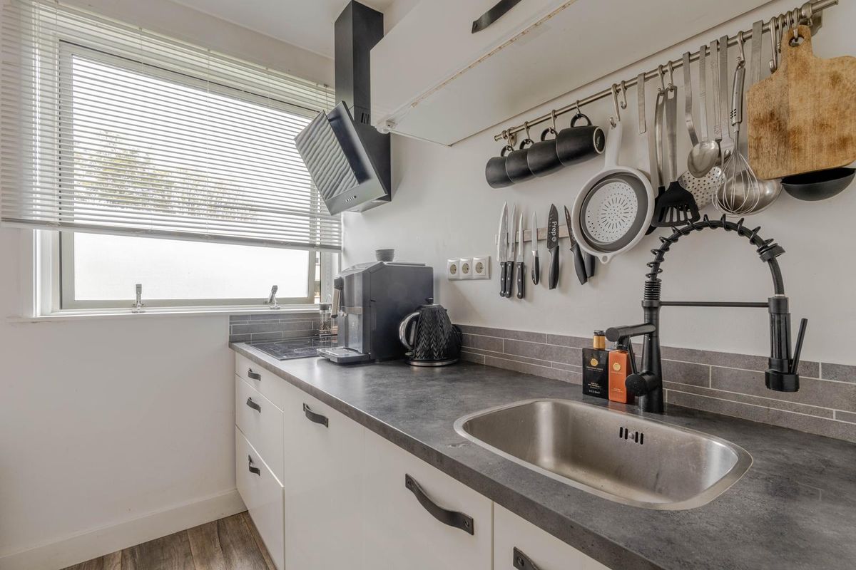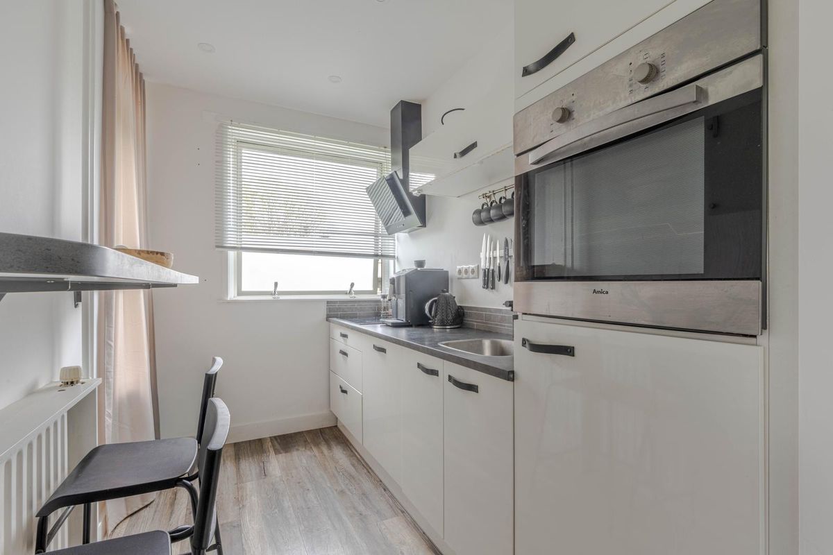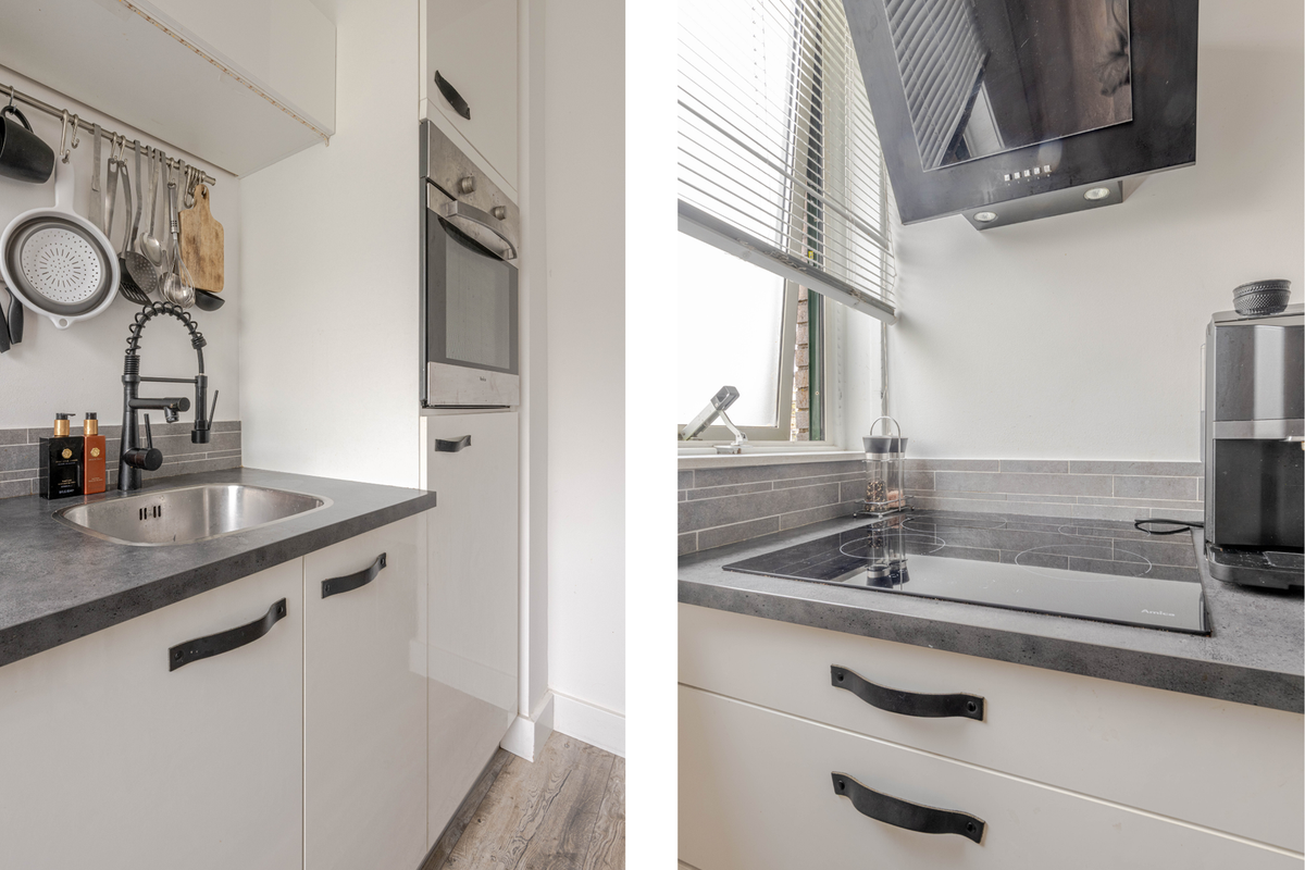 * Lichte keukenruimte voorzien van inbouwkeuken met een antraciet werkblad en voorzien van inductiekookplaat, afzuigkap, oven en vaatwasmachine (pomp werkt niet optimaal). Deur met toegang tot het balkon.