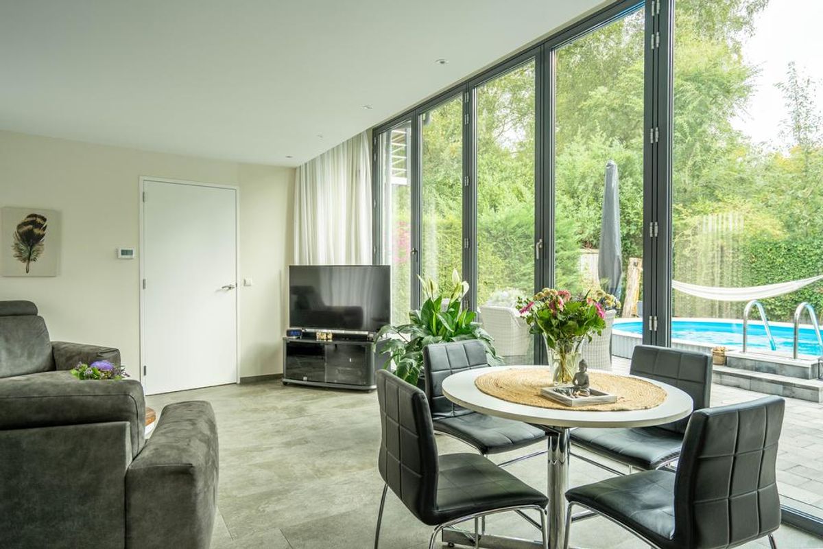 Fraai en rustig gelegen in eigen beheer gebouwde woning (bouwjaar 2017) op eigen grond van +/- 497 m², 3 slaapkamers, eigen oprit en zwembad op recreatiepark “De Kanthoeve” te Bakel, midden in de natuur.