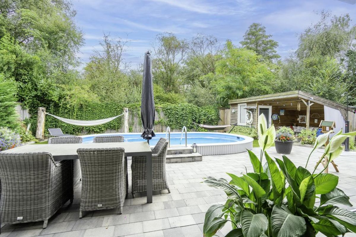 Tevens beschikt de achtertuin en voortuin over een prieel, overkappingen en houten berging met volop bergruimte. De achtertuin is volop privacy biedend en beschikt over een vrije achterom.