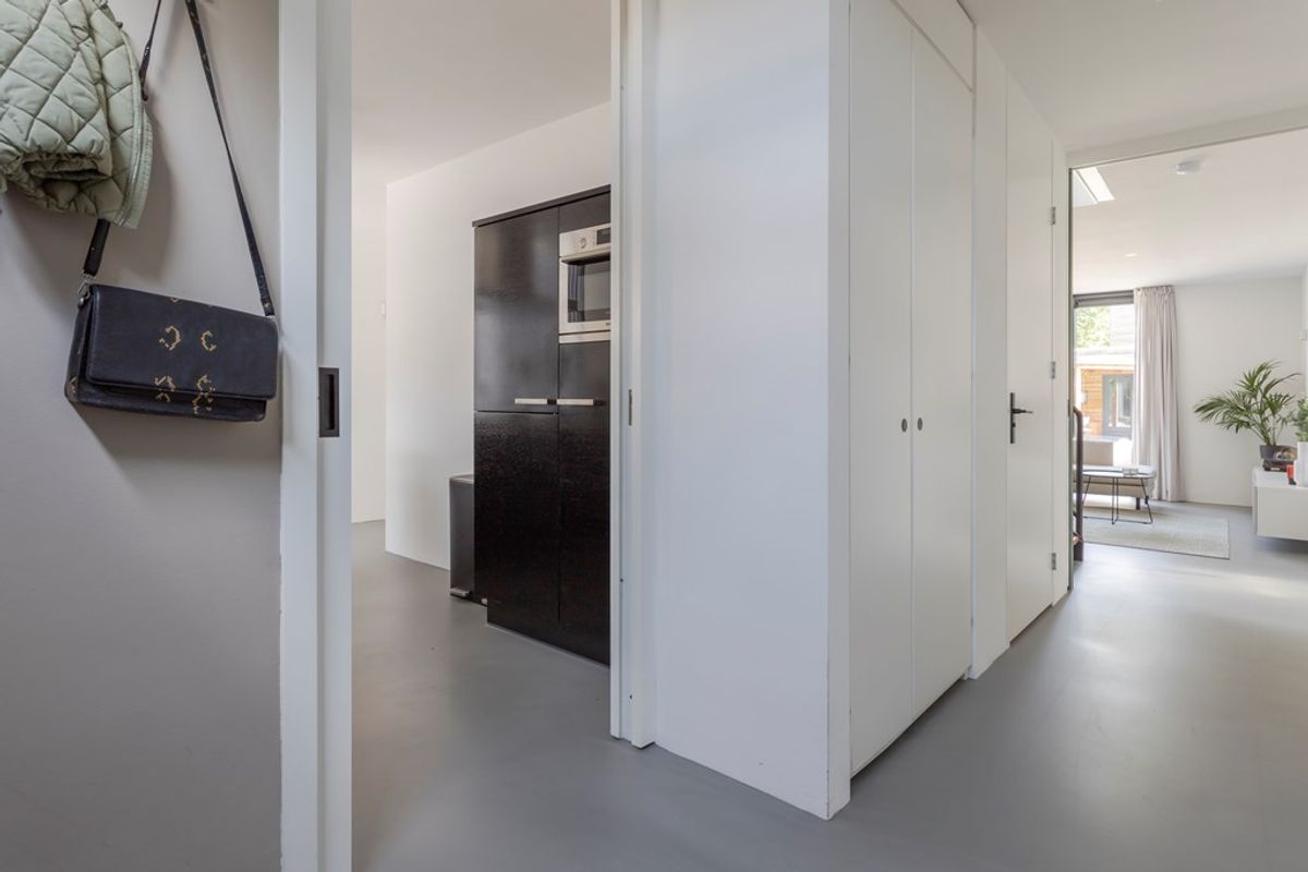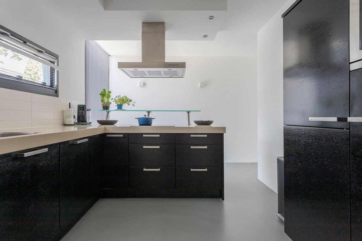 De keuken bevindt zich aan de voorzijde en is voorzien van een inductie kookplaat, spoelbak, afzuigkap, vaatwasser, koelkast en combi-oven. Inpandige bergruimte met aansluitingen t.b.v. wasapparatuur, vriezer en de mechanische ventilatie alsmede de verdeler voor de vloerverwarming.