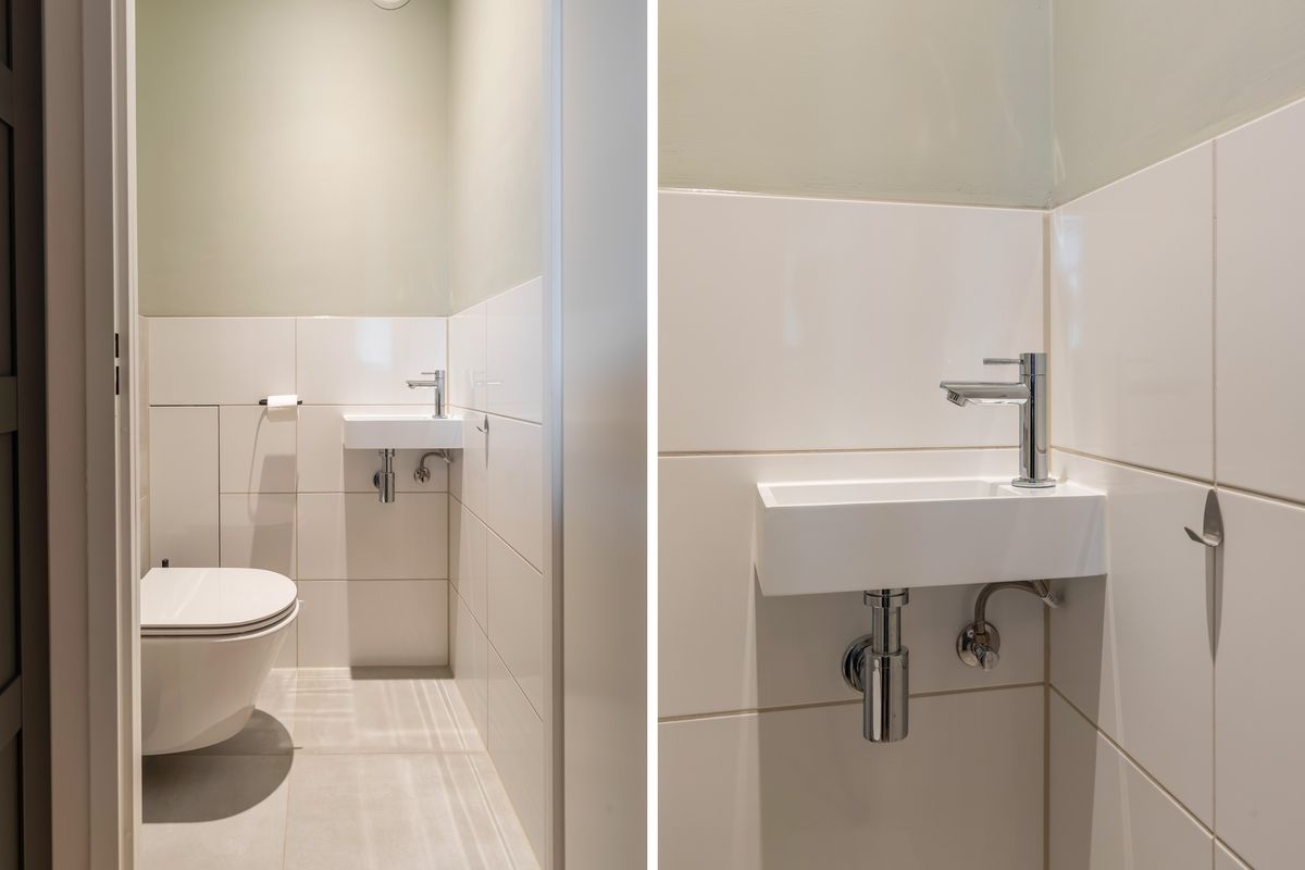 Ook de badkamer is helemaal van nu: licht, ruim en praktisch ingedeeld. De inloopdouche biedt volop comfort, terwijl de dubbele wastafel met ladekasten zorgt dat alles netjes een plek heeft. Een radiator voor de handdoeken ontbreekt niet. Het aparte, eveneens vernieuwde toilet zorgt voor extra gemak.