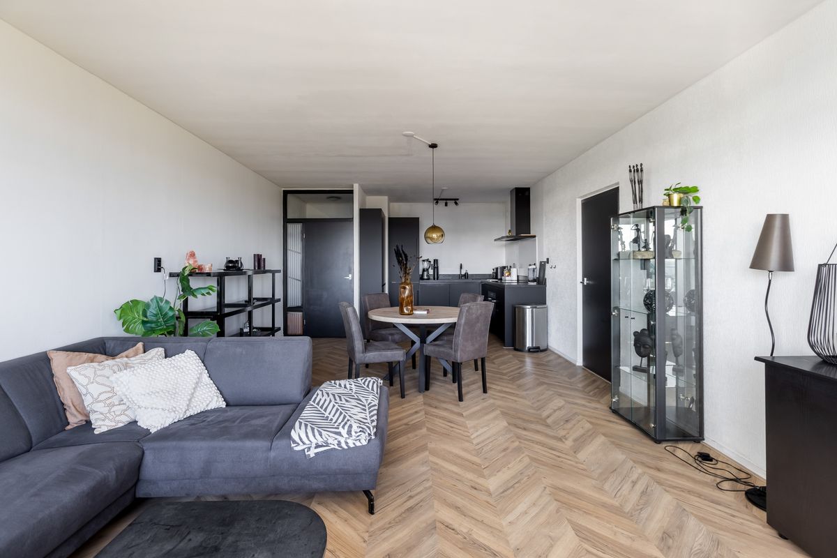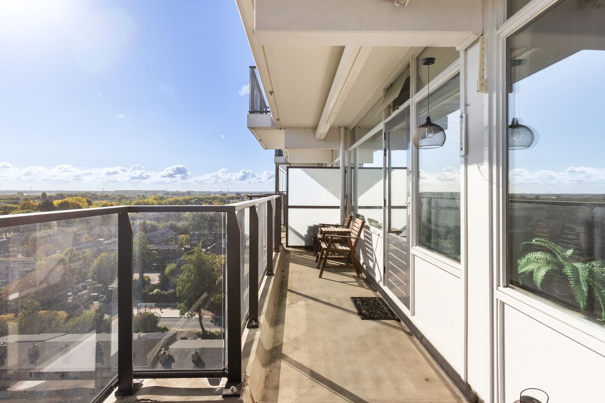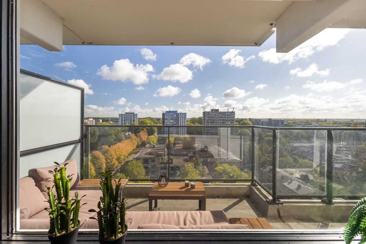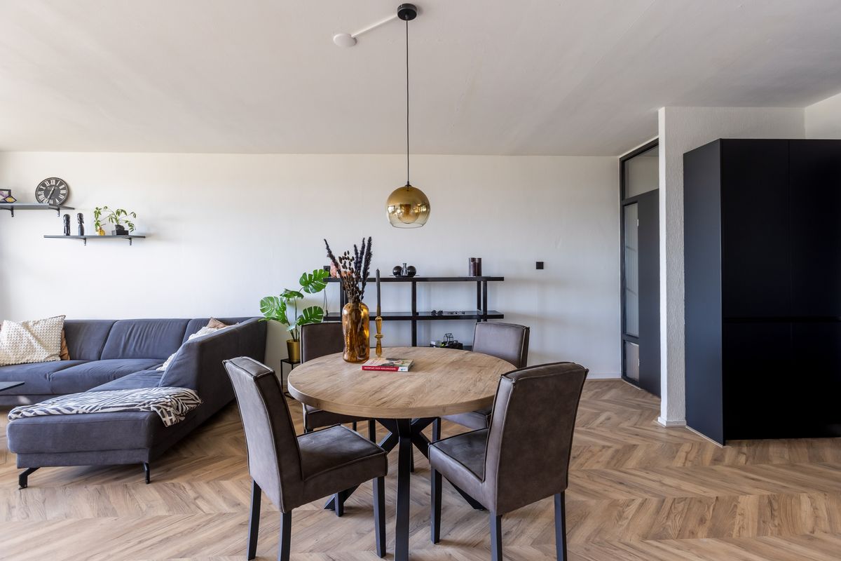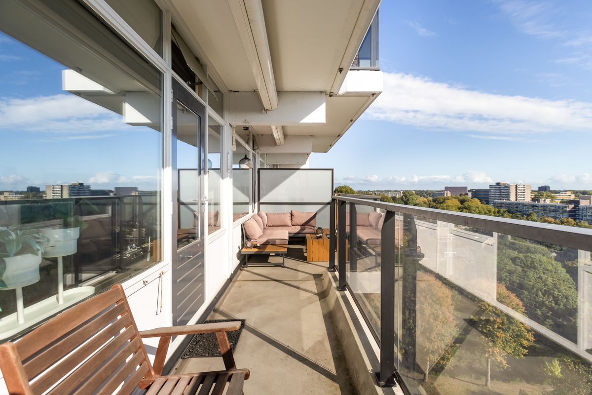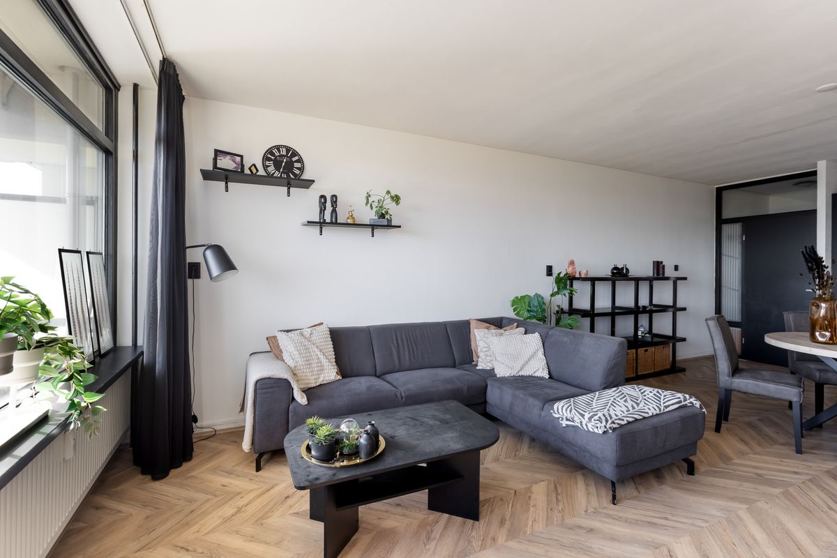 Een echte eyecatcher is het ruime balkon, bereikbaar vanuit de woonkamer. Vanaf hier geniet je van een panoramisch uitzicht over de wijk en tot ver voorbij de Biesbosch. De nieuwe balustrades van lichtgrijs rookglas in combinatie met zwart staal geven de buitenruimtes een eigentijdse uitstraling. Bovendien kun je hier van ’s ochtends vroeg tot laat in de middag van de zon profiteren.