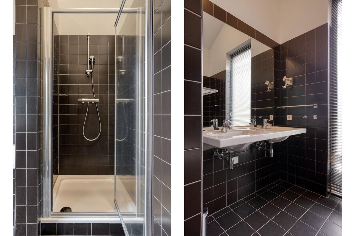 De ruime overloop beschikt over een praktische vaste kast en biedt toegang tot een tweede royale slaapkamer. Ook op deze verdieping is een badkamer aanwezig, compleet met douchecabine, wastafel en toilet – ideaal voor gasten of kinderen.