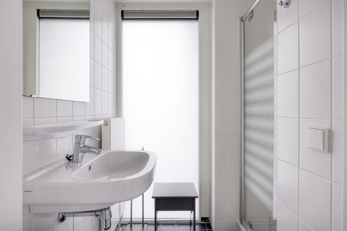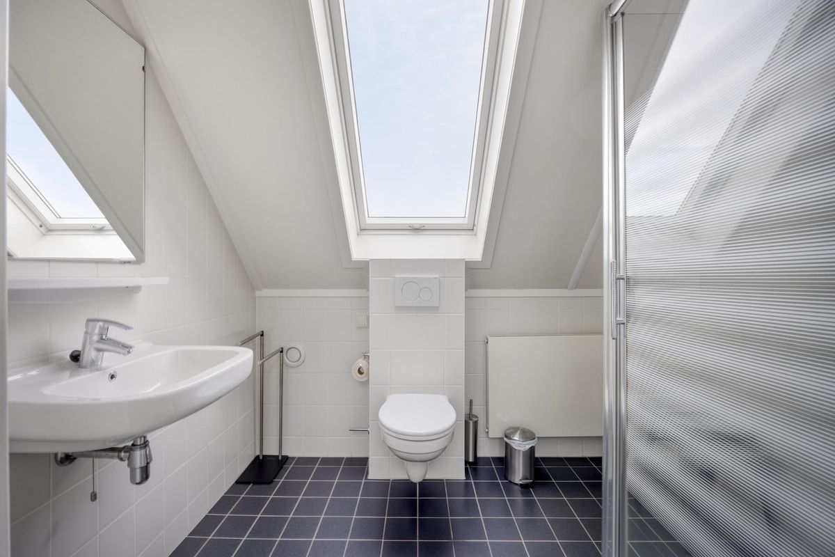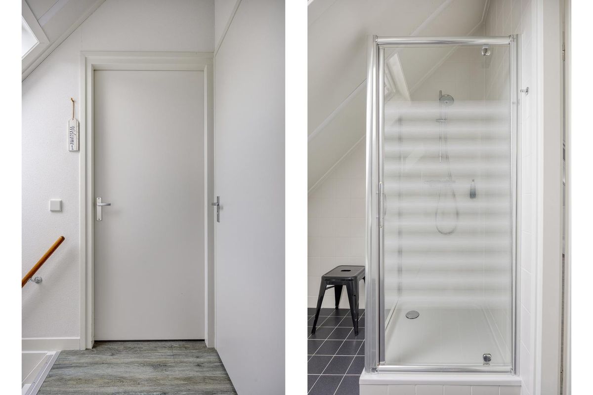 De overloop biedt toegang tot een tweede royale slaapkamer. Ook op deze verdieping is een badkamer aanwezig, compleet met douchecabine, wastafel en toilet.