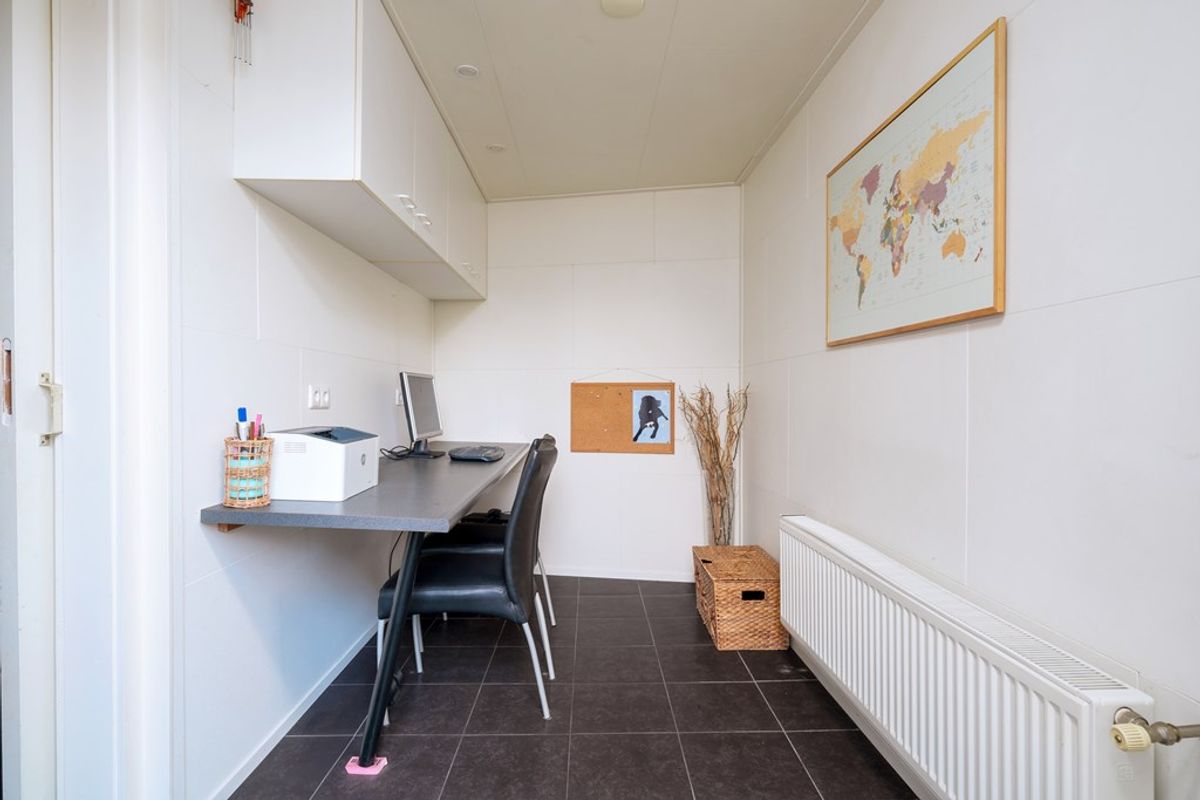 De woning beschikt over een brede garage, die dankzij de situering in deze straat optimaal bereikbaar is. Voor de garage ligt een ruime dubbele oprit met plek voor meerdere auto’s, waardoor parkeren geen enkel probleem is. Achter de garage bevindt zich bovendien een kantoorruimte, perfect voor thuiswerken of als hobbyruimte.