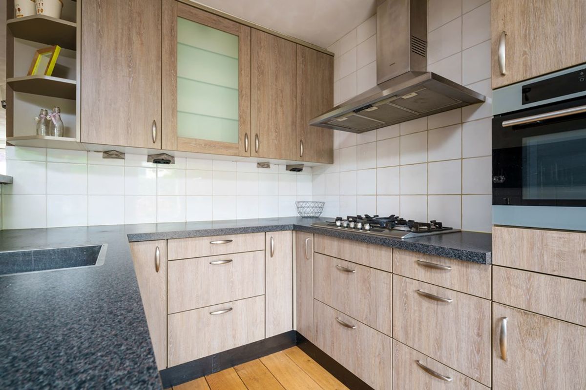 De royale leefkeuken in U-opstelling vormt het hart van de woning. Dankzij deze opstelling is er zeer veel werkruimte, ideaal voor de kookliefhebber. De keuken is verder uitgerust met een bar, een 5-pits kookplaat, combi-oven en een vaatwasser. Vanuit de keuken loop je via de schuifpui of de loopdeur direct het terras op een fijne verbinding tussen binnen en buiten, perfect voor lange zomeravonden en etentjes in de tuin.