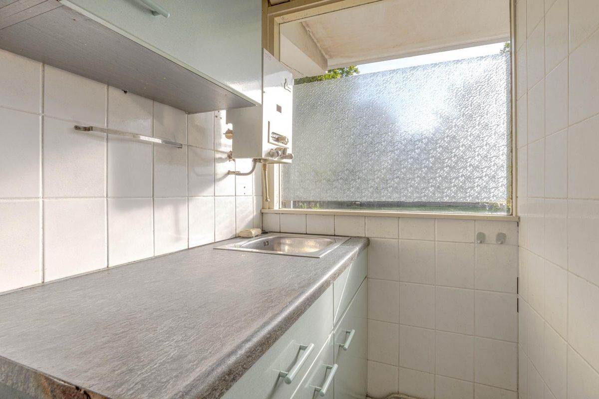 Via de galerij op de eerste verdieping bereik je de entree van dit knusse appartement. De hal geeft toegang tot de ruime slaapkamer die op dit moment voorzien is van twee inbouwkasten. De keukenruimte is voorzien van een functionele keuken en de badkamer is eveneens functioneel ingericht met onder andere een ligbad en toilet. Aan de voorkant is de gezellige woonkamer gelegen, de grote raampartijen en openslaande deuren bieden veel lichtinval. Het balkon is gelegen op het westen, wat genieten van de avondzon betekent!