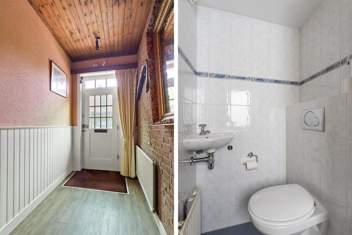 Via de voortuin kom je binnen in de hal met toegang tot de woonkamer en de trapopgang naar de eerste verdieping.