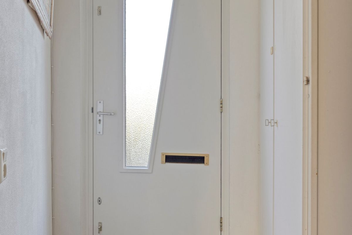 Je loopt vanuit de keuken naar de hal gelegen aan de achterzijde van de woning.