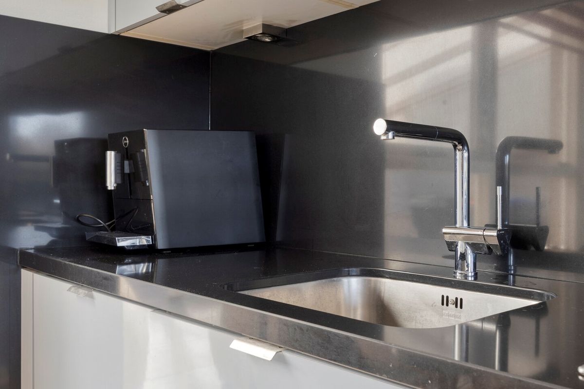 Aan de achterzijde van de woning ligt de open keuken. Je kijkt vanuit het grote raampartij uit over de achtertuin.