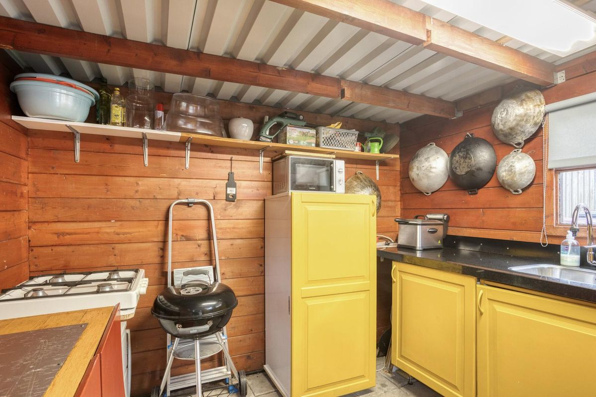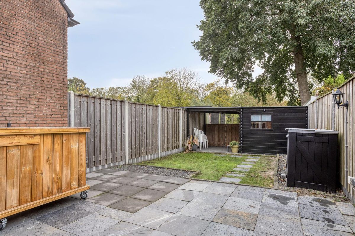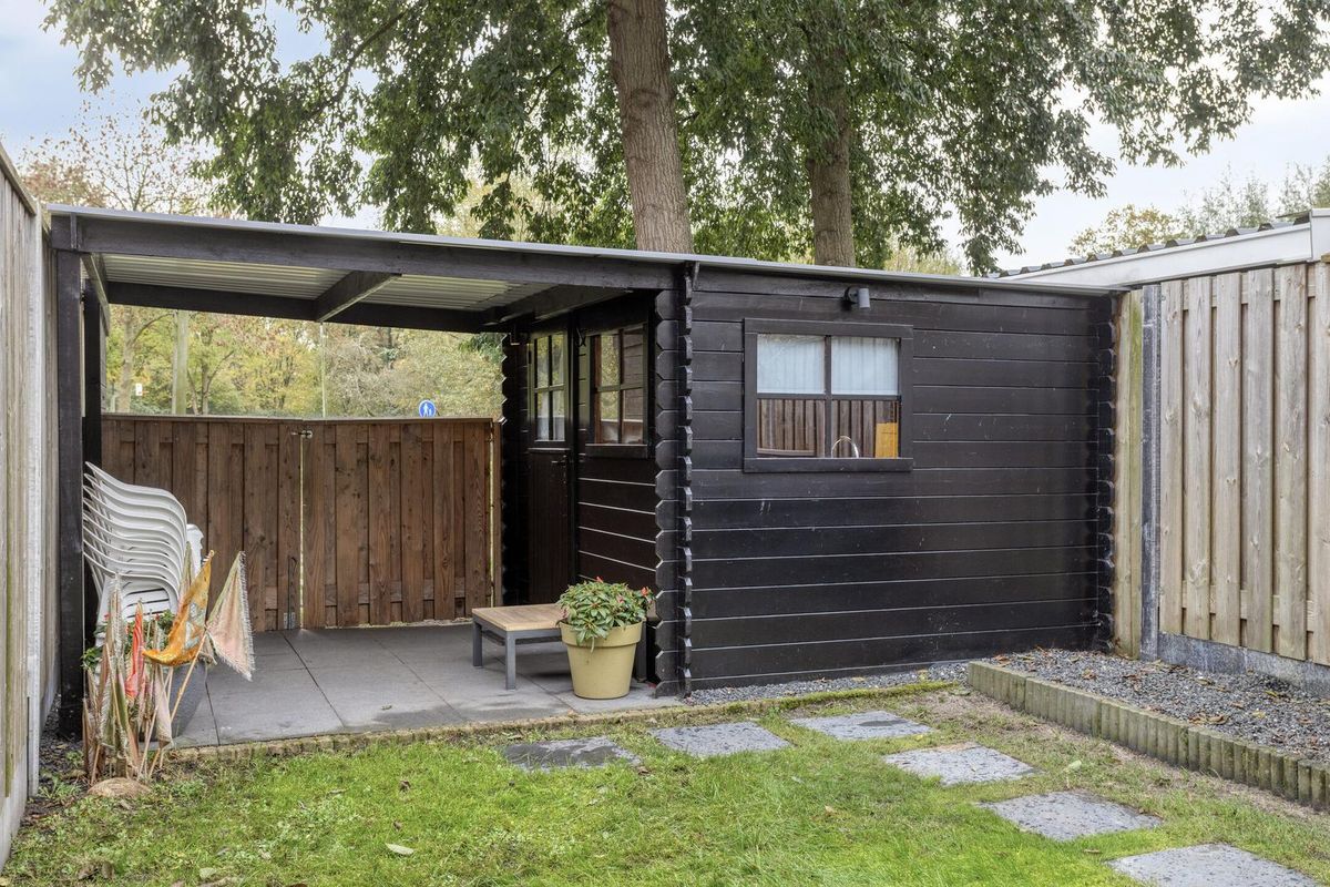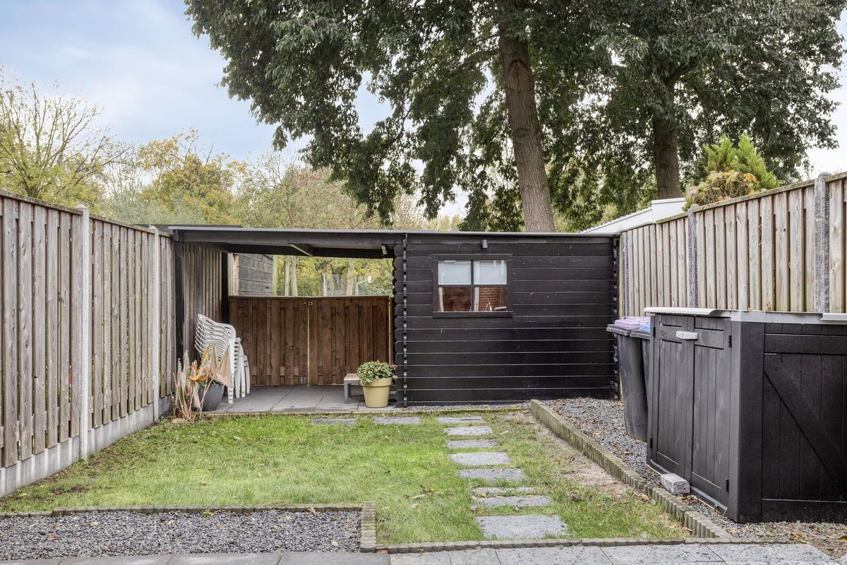 Vanuit de woonkamer heb je toegang tot de zonnige tuin welke is gelegen op het zuiden. De tuin is goed qua formaat en netjes aangelegd. Achterin de tuin is de ruime berging/buitenkeuken te vinden. Deze ruimte is voorzien van elektra en water. Ook heeft deze ruimte toegang tot het achtergelegen park. Ideaal om met de fiets achterom te komen. Deze ruimte is perfect om te koken, relaxen of misschien wel als ideale ‘mancave’.