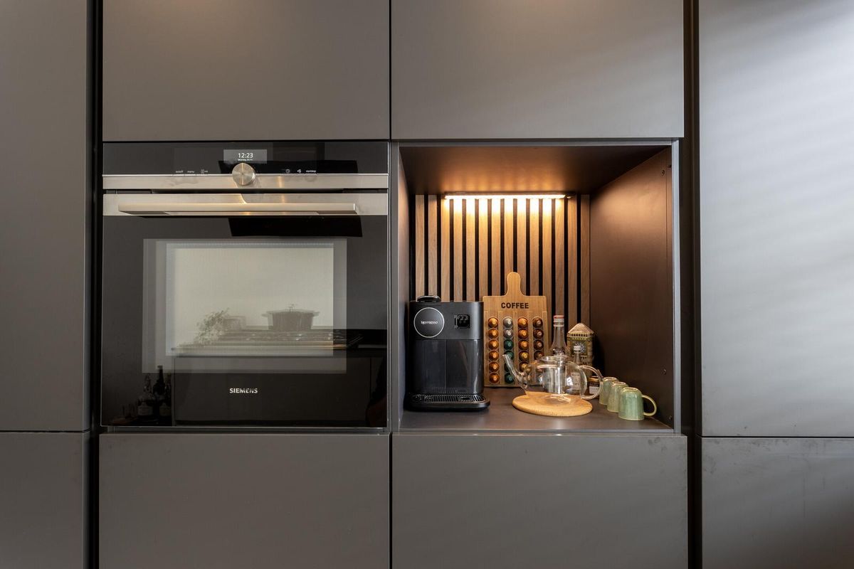 Via de oprit met eigen parkeergelegenheid kom je bij de voordeur. Via de voordeur heb je toegang tot de ruime entree van deze woning. Via de hal heb je toegang tot het moderne toilet en gemoderniseerde meterkast. Vanuit de hal tevens toegang tot de woon- en slaapverdieping van deze woning. De begane grond verdieping heeft alle voorzieningen die je wenst! Zo beschikt deze verdieping over een ruime half open keuken gelegen aan de voorzijde, een riante woonkamer en toegang tot de zonnige en diepe tuin. De keuken aan de voorzijde is modern en goed ingedeeld. Deze fraaie keuken is voorzien van luxe Siemens apparatuur zoals combi-oven, vaatwasser, gas-kookplaat en afzuigkap. Een leuk detail is de sfeervolle koffiehoek! Kom je ruimte te kort? Dan beschikt deze verdieping ook nog over een ruime trapkast.
