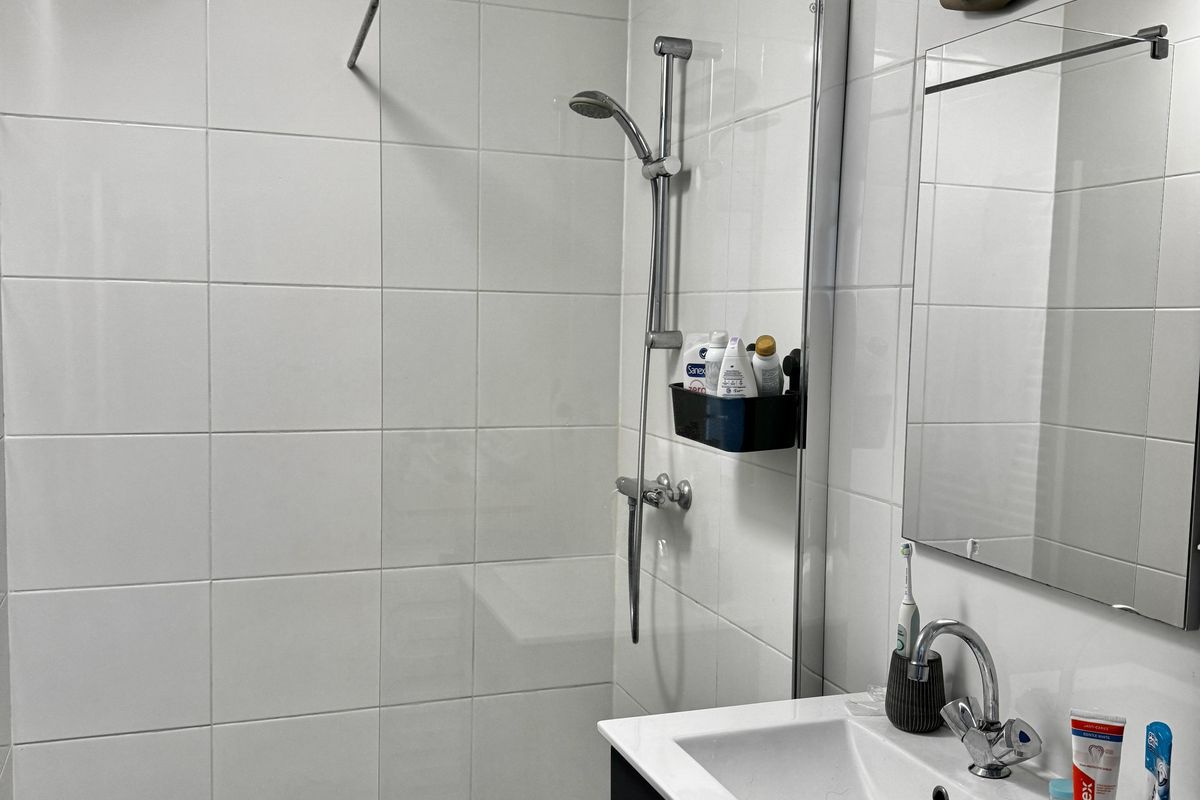 Je komt binnen in een lichte hal met toegang tot de keuken, badkamer, apart toilet én twee slaapkamers (waarvan één perfect als werk- of logeerkamer). De keuken heeft plek voor een eethoek en grenst aan de badkamer met douche en wasmachine-aansluiting. Boven vind je de royale woonkamer met veel lichtinval en openslaande deuren naar het balkon – ideaal voor je ochtendkoffie of een avondborrel.