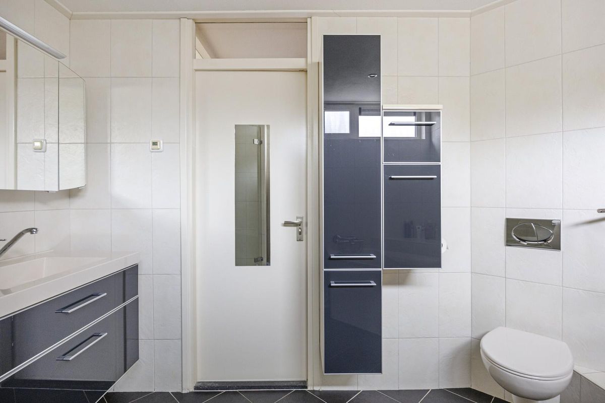 De overloop op de tweede verdieping biedt toegang tot een ruime vierde slaapkamer, voorzien van een dakkapel, dakraam en praktische bergschotten. Daarnaast bevindt zich op deze verdieping de opstelplaats van de HR-combiketel (2018) en de aansluiting voor de wasmachine. Het dakkapel is uitgevoerd in onderhoudsarm kunststof.