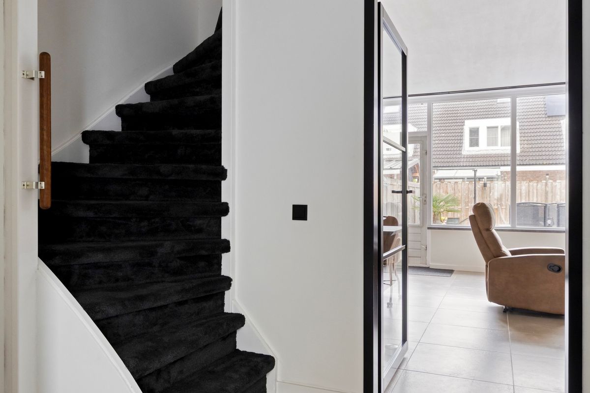 Een kast onder de trap zorgt voor veel (opberg)ruimte.