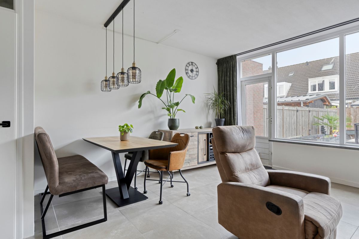U komt binnen in de hal, met toilet, meterkast en trapopgang, vervolgens betreedt u de woonkamer. De woonkamer is over de volle breedte aan de achterzijde gelegen. Een brede pui met buitendeur zorgt voor veel lichtinval.