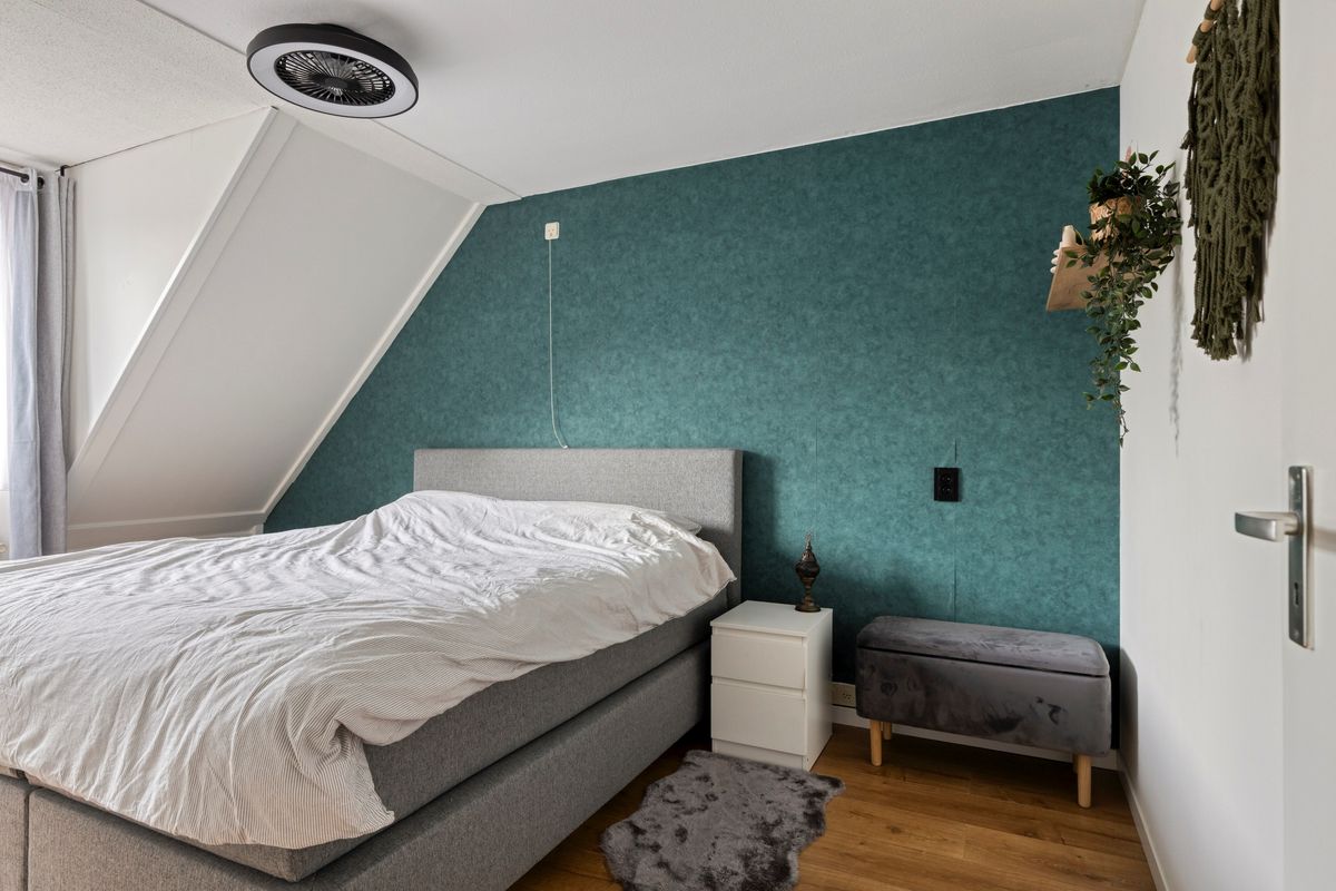 De tweede verdieping is met een vaste trapopgang te bereiken en biedt een ruime vierde slaapkamer. Hier zijn tevens de witgoedaansluitingen voorzien.