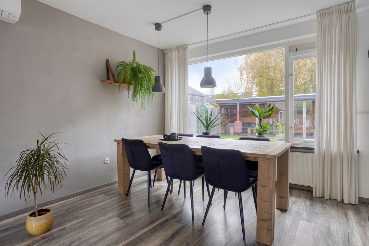 Alsof dat nog niet genoeg is, heb je hier ook een aangebouwde bijkeuken. Wat dacht je van extra plek voor de wasmachine of voorraad? Super praktisch ! En omdat het oog natuurlijk ook wat wil, kijk je vanuit de woonkamer zo uit op de ruime achtertuin. Daar wacht een grote, overdekte veranda op je. Perfect voor lange zomeravonden, gewoon helemaal niks doen en genieten van het buitenleven. Het mooie aan deze tuin is dat er altijd wel een fijn hoekje in de zon (of schaduw) te vinden is.