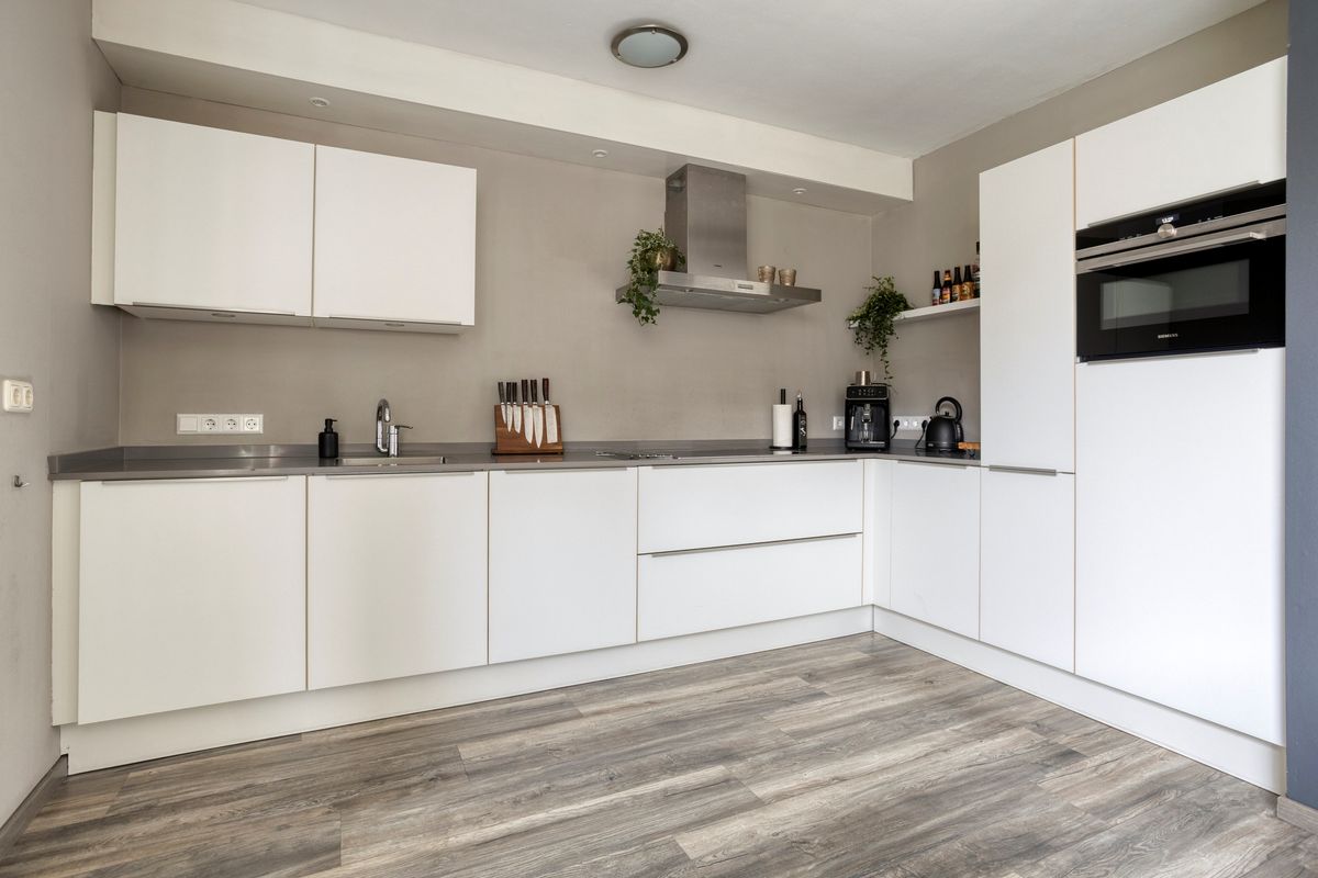 Wat meteen opvalt als je binnenkomt, is de nette afwerking door het hele huis. Hier is de afgelopen tijd behoorlijk wat liefde en aandacht ingestoken. Je hoeft niet eerst te klussen, schilderen of verbouwen; gewoon je meubels neerzetten en je voelt je thuis. De lichte woonkamer loopt direct over in de moderne, open keuken. Het strakke keukenblok is helemaal van nu en biedt lekker veel opbergruimte.