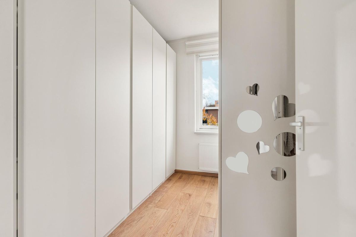 - Entree: Nette en lichte hal met een laminaatvloer, strakke witte wanden en een ruime inbouwkast met spiegeldeuren.