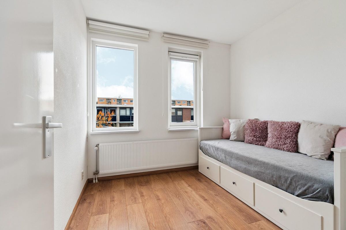 -Slaapkamer II: Gelegen aan de achterzijde van de woning bevindt zich een lichte kamer met een warme laminaatvloer en een rustige uitstraling.