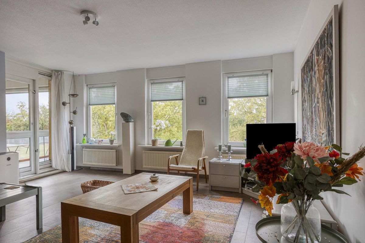 * Lichte woonkamer van ca. 35 m2 voorzien van plavuizen vloer en deur naar het zonnige balkon.