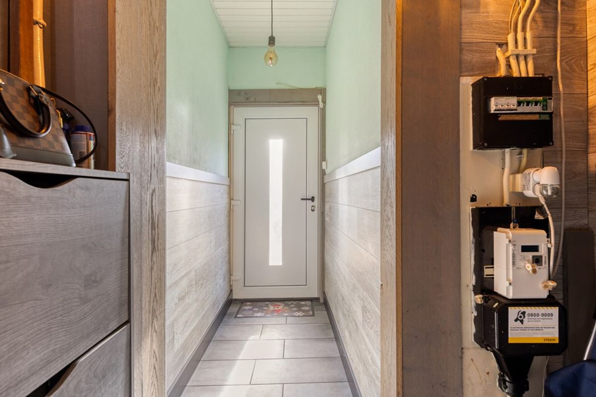 Het voormalige balkon aan de achterzijde is dicht gebouwd en is nu in gebruik als bijkeuken. Hier is ook de aansluiting van de wasmachine.