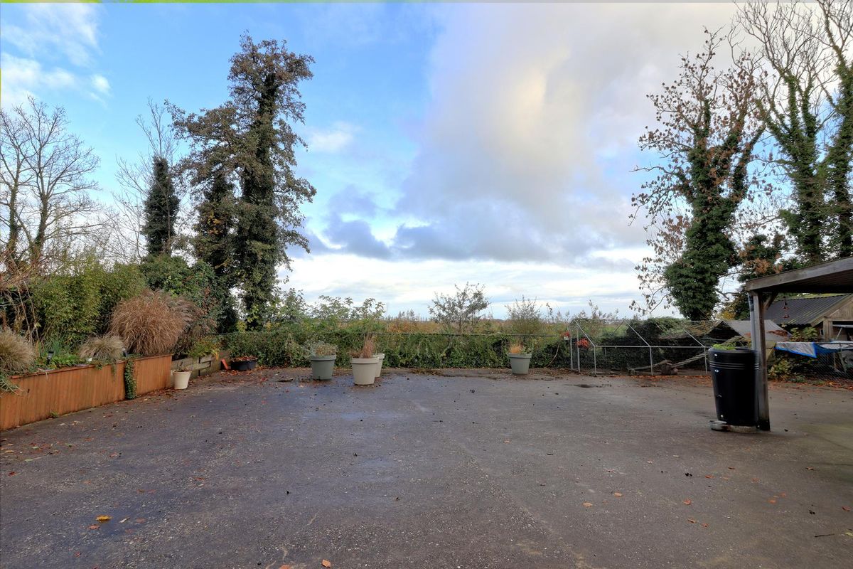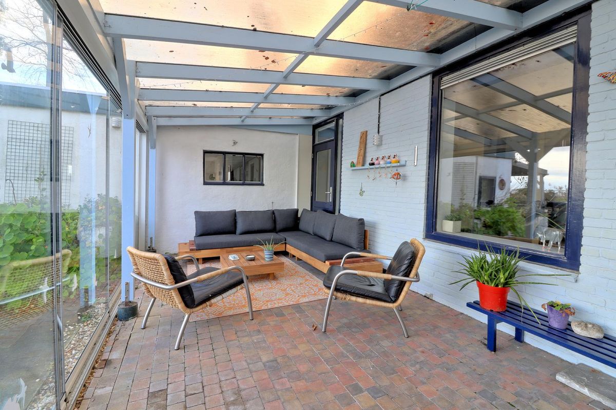 Een heerlijk grote tuin met eigen oprit naar de woning. De tuin aan de voorzijde is ca. 30 meter lang en is op het zuiden gericht. De achtertuin is geheel omheind met degelijk hekwerk, en voorzien van een betonnen plaat t.b.v. ingericht voor de hobby van de eigenaren. De woning heeft een heerlijke veranda over de volle breedte van de woning.