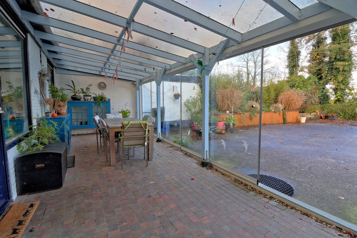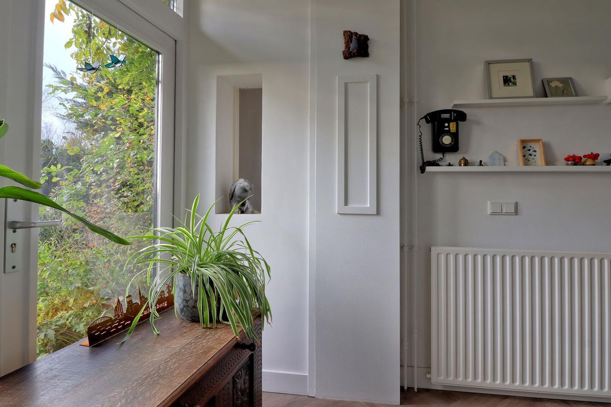 Vanuit de woonkamer bereikt u eveneens met een terrasdeur de veranda, de bijkeuken, de tweede provisiekelder en de voormalige badkamer welke is ingericht als wasmachine-ruimte.