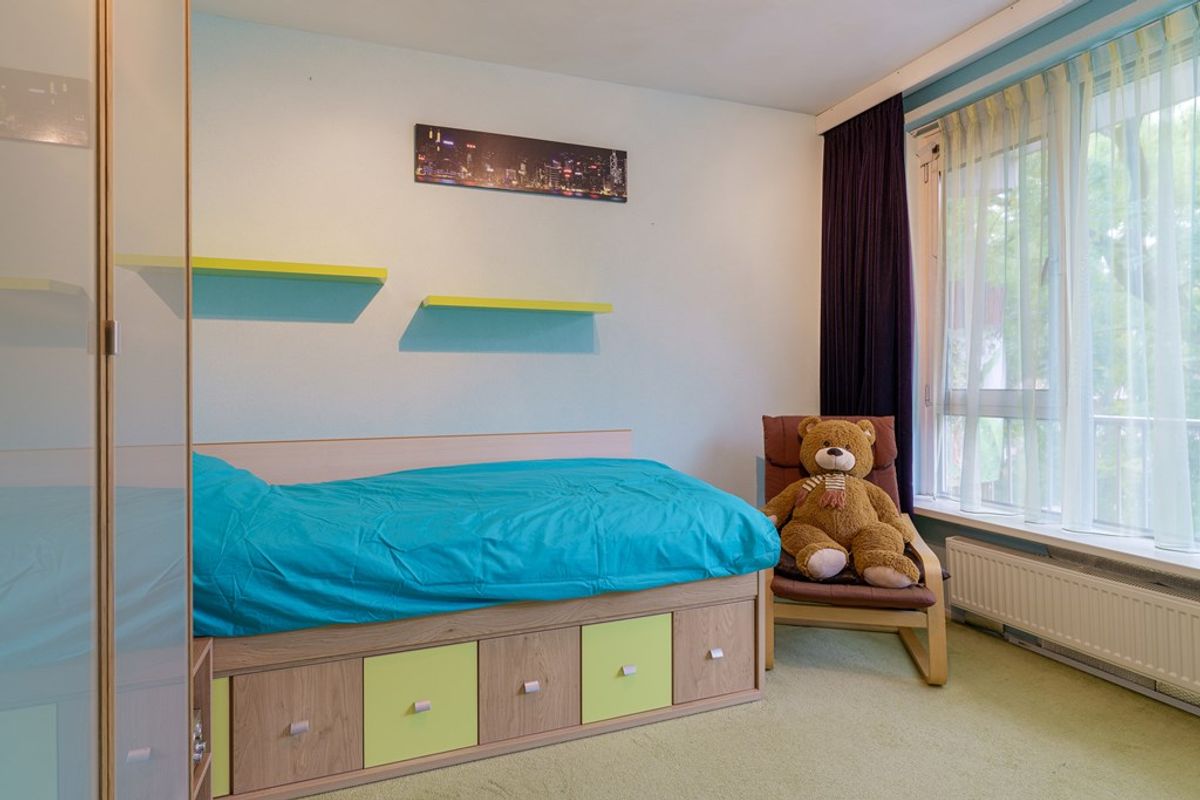 De woning ligt in een lichte en open omgeving, met veel bomen en brede zichtlijnen. Hier vindt u een fijne mix van moderne woon- en kantoorgebouwen. Vanaf het balkon heeft u een mooi uitzicht over het groen en de stad, met enkele architectonische accenten die het straatbeeld interessant maken.
