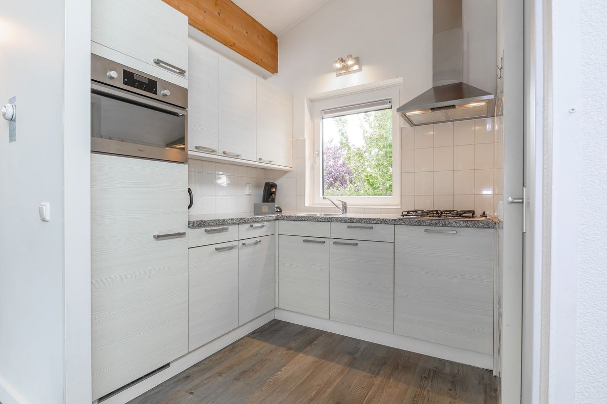 - De tijdloze keuken is uitgerust met een gaskookplaat, afzuigkap, vaatwasser, combi-oven-magnetron, koelkast en een keukenblad van steen.