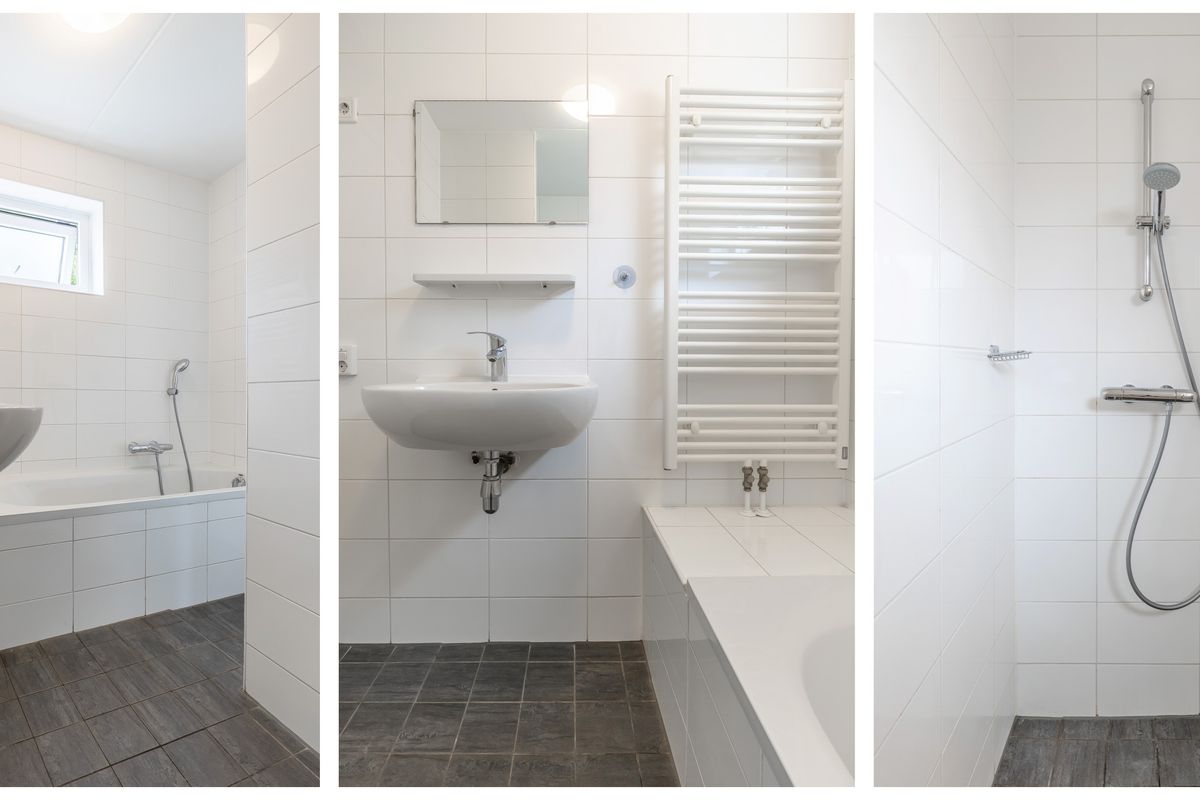 - De badkamer is onder andere ingericht met een inloopdouche, met een ligbad, met wastafel, met een planchet, met een spiegel, met een designradiator en er is een raam voor het altijd zo gewenste daglicht.
