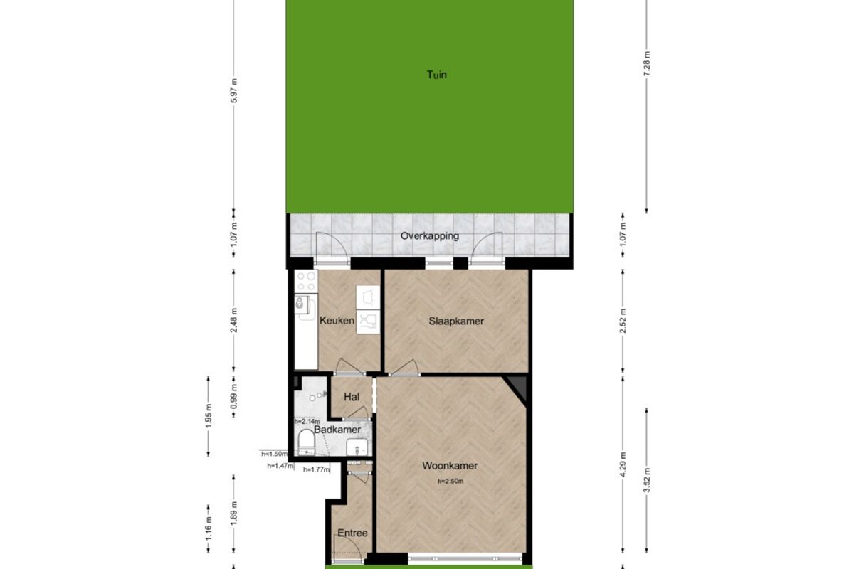 Licht 2 kamer appartement met een voor- en achtertuin. Wanneer u de wijk betreedt voelt u de geschiedenis!