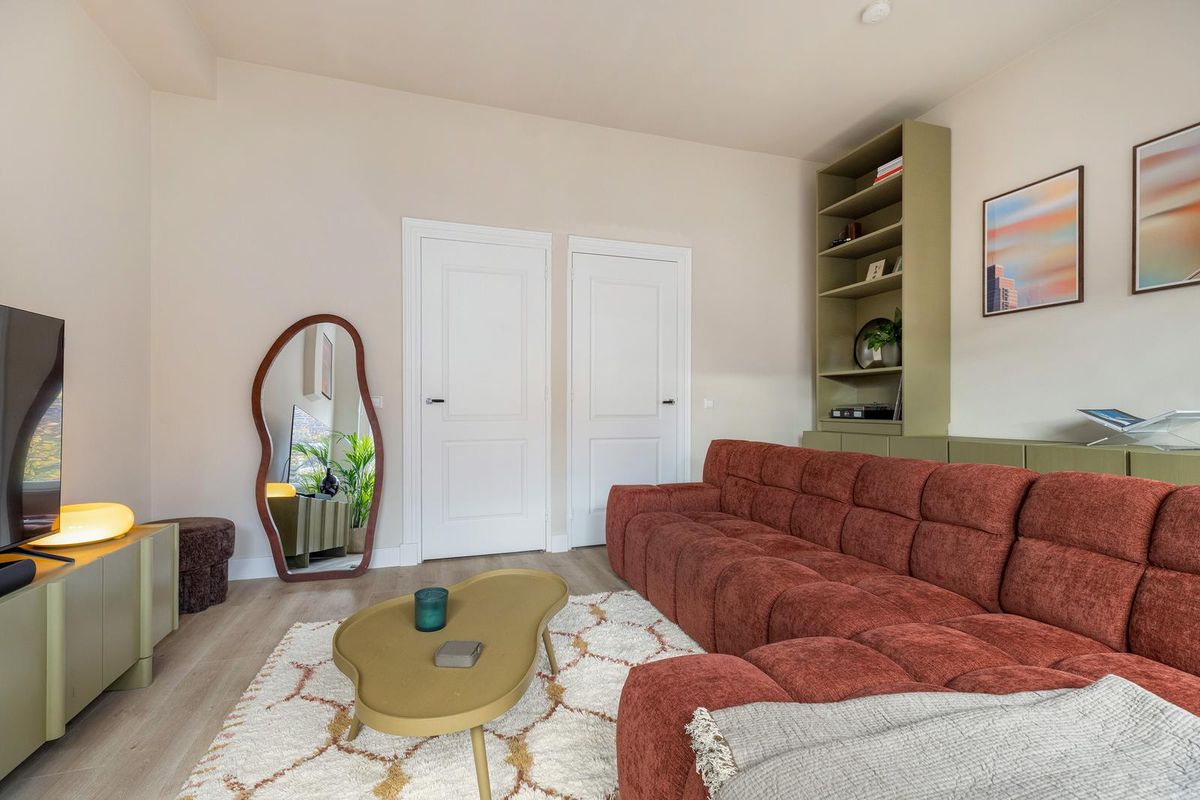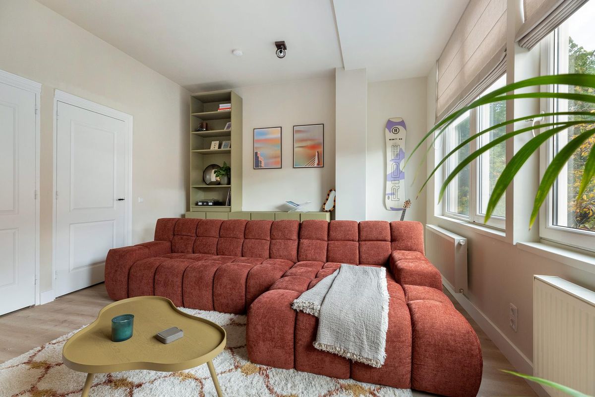 Aan de achterzijde ligt de ruime, lichte woonkamer die door de indeling en de grote ramen een heerlijk gevoel van rust en ruimte creëert.