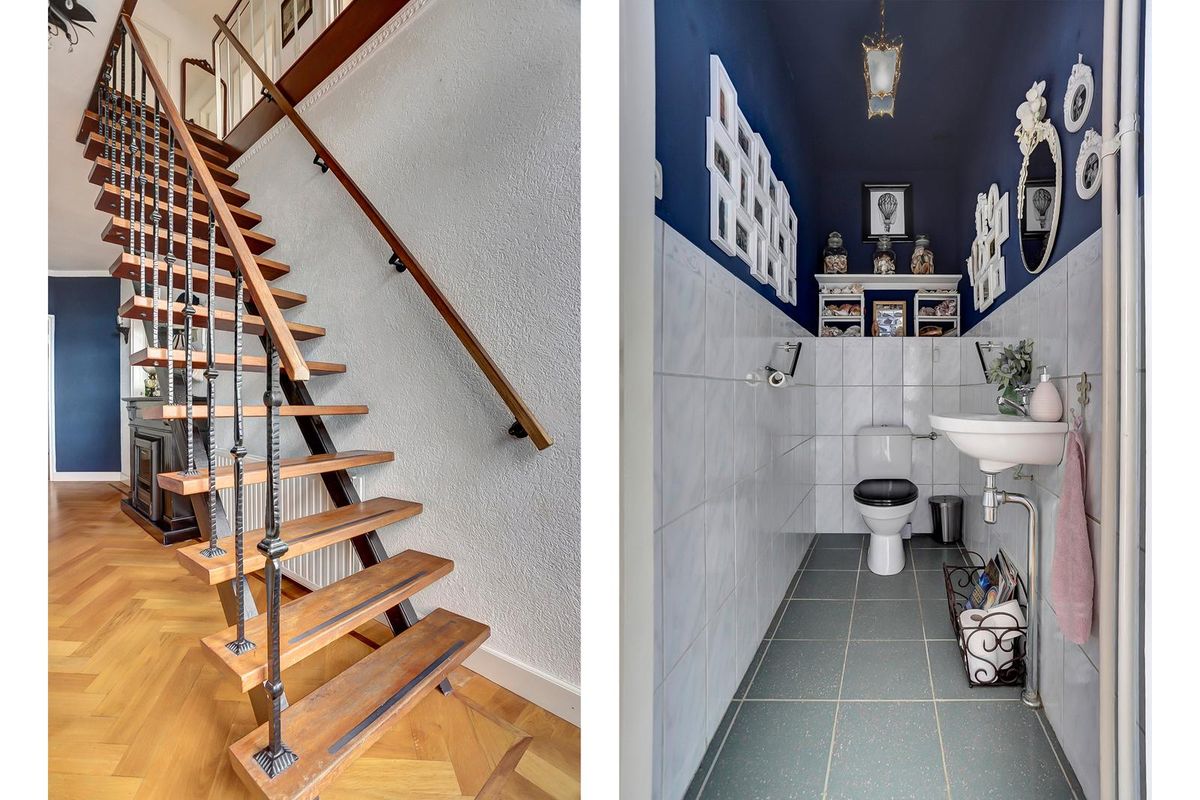 Vanuit de entreehal loop je via de trap naar boven. Eenmaal aangekomen op deze verdieping heb je dezelfde warme sfeer door de houten vloer. Hierboven zijn er 3 ruim bemeten slaapkamers en is er een 4e te creëren. In totaal zijn er dan dus maar liefst 5 slaapkamers! De hoofdslaapkamer bevindt zich over de gehele lengte van de woning, is licht door de raampartijen aan weerszijden. In de andere slaapkamer aan de voorzijde tref je het luik met vlizotrap naar de bergzolder. De slaapkamer aan de achterzijde heeft vaste kasten en een deur naar het dakterras. Het wordt nog lastig kiezen waar je koffie drinkt ’s ochtends! De badkamer bevindt zich in het midden en is voorzien van een inloopdouche, toilet en wasmeubel.