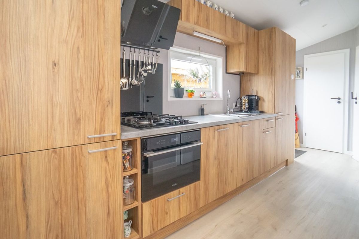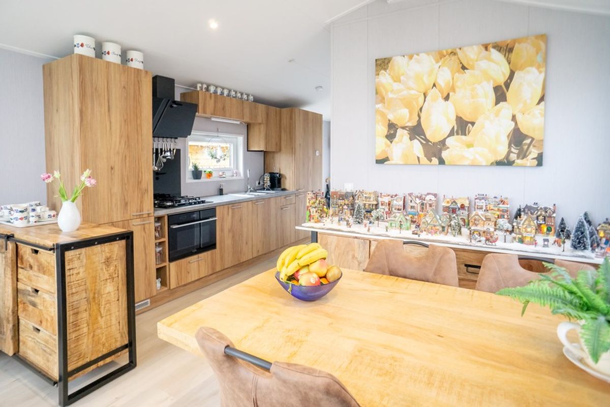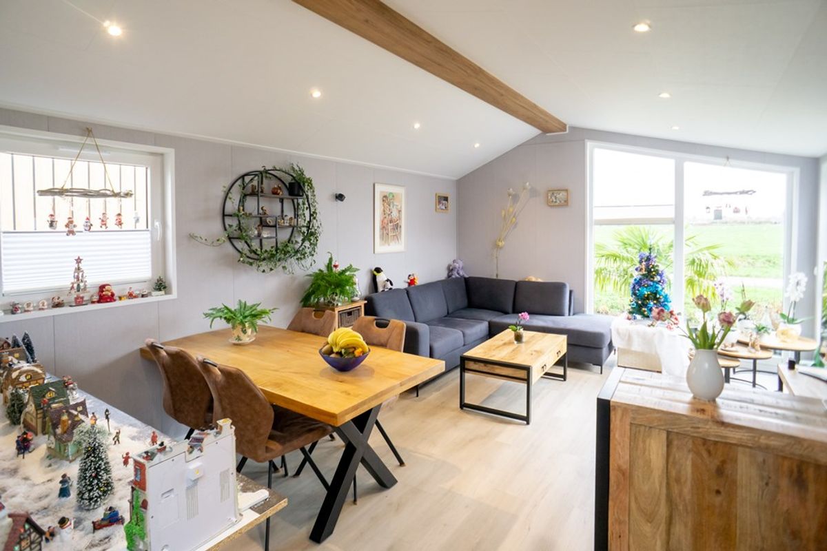 Het chalet heeft een ruime, lichte woonkamer die uitkijkt over de omliggende weilanden. Dit zorgt voor een prachtig panoramisch uitzicht, dat een gevoel van rust en ruimte geeft. De open keuken is modern en voorzien van alle benodigde apparatuur, waardoor koken een waar plezier wordt. Het hele interieur is met zorg ontworpen en afgewerkt, met oog voor detail en comfort.