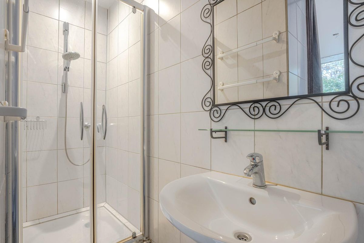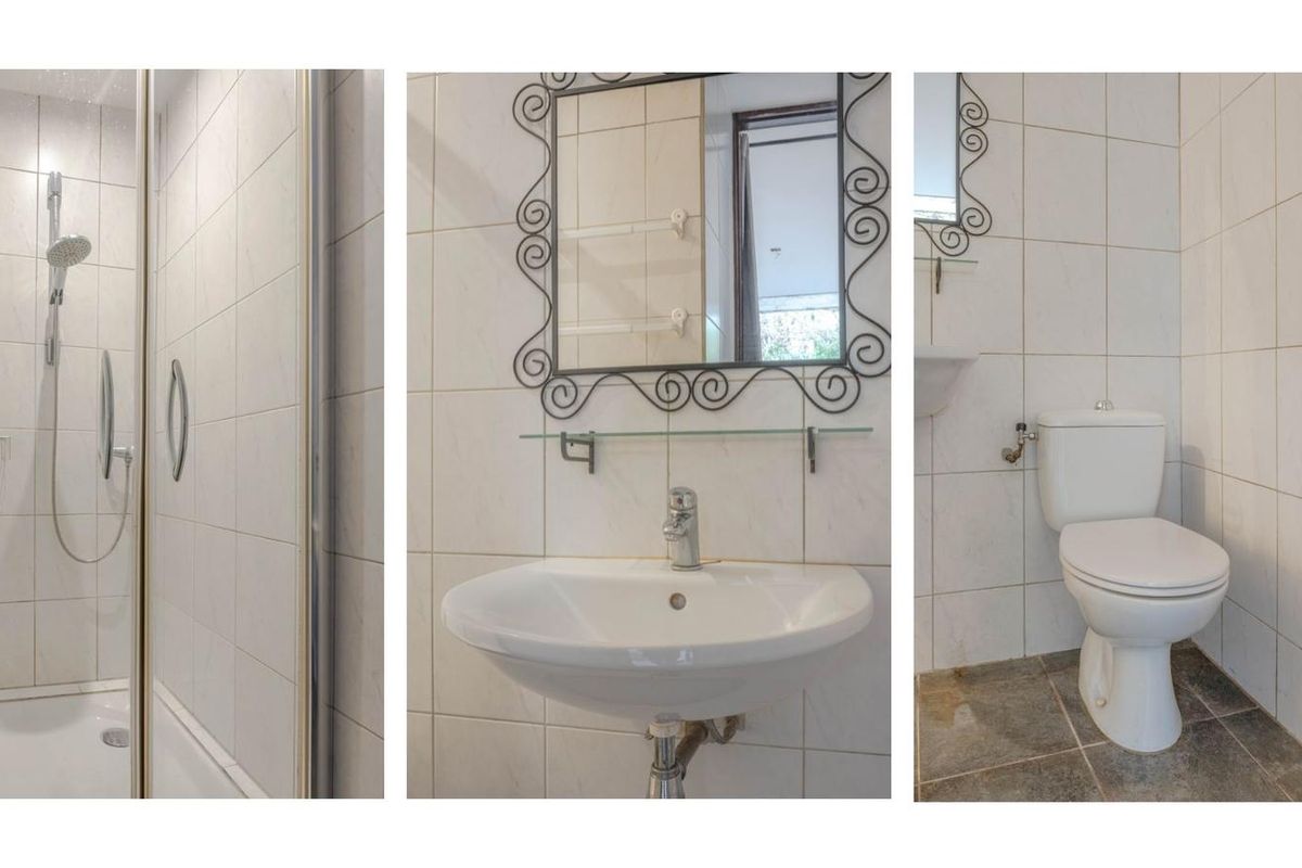 * Badkamer voorzien van douchecabine, wastafel, duobloktoiletopstelling en lichte betegeling.