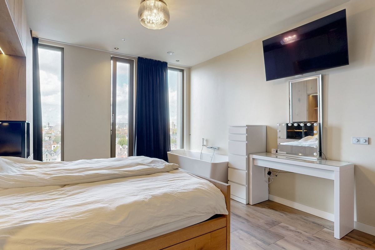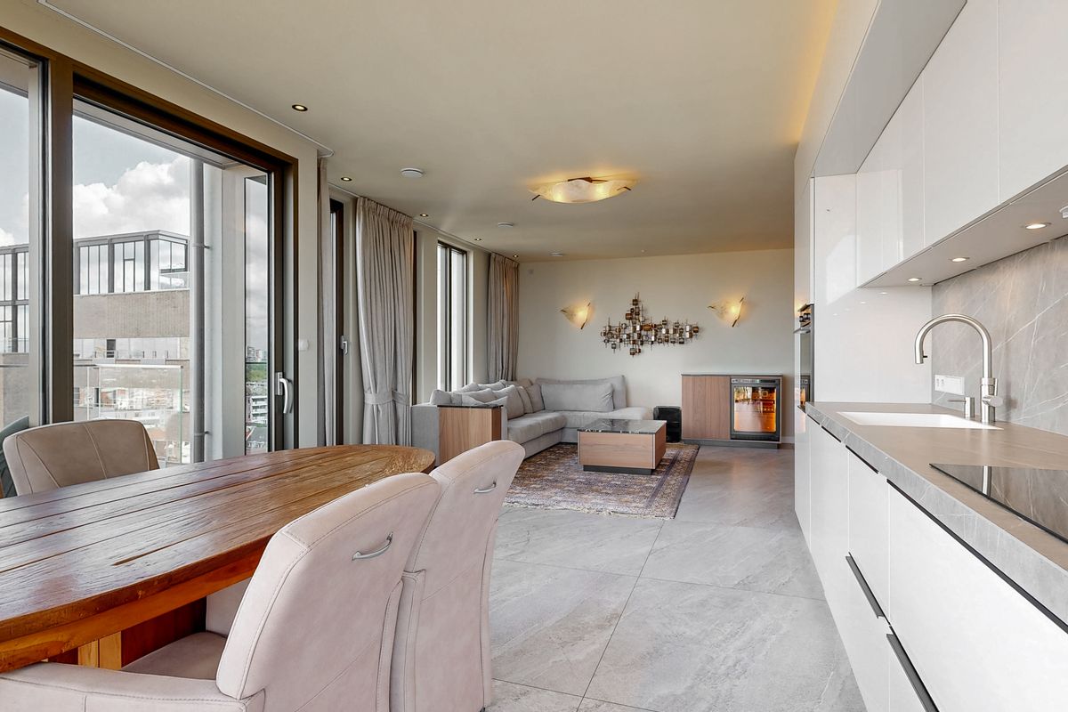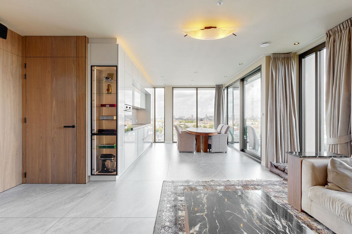 Met een oppervlakte van circa 100 m² biedt dit appartement alles wat je zoekt in een moderne woning. De extra ruime woonkamer is het hart van het appartement, met grote raampartijen die zorgen voor veel lichtinval en een adembenemend uitzicht over de stad. Of je nu ontspant in de woonkamer of geniet van een diner met vrienden, het uitzicht is altijd een blikvanger.