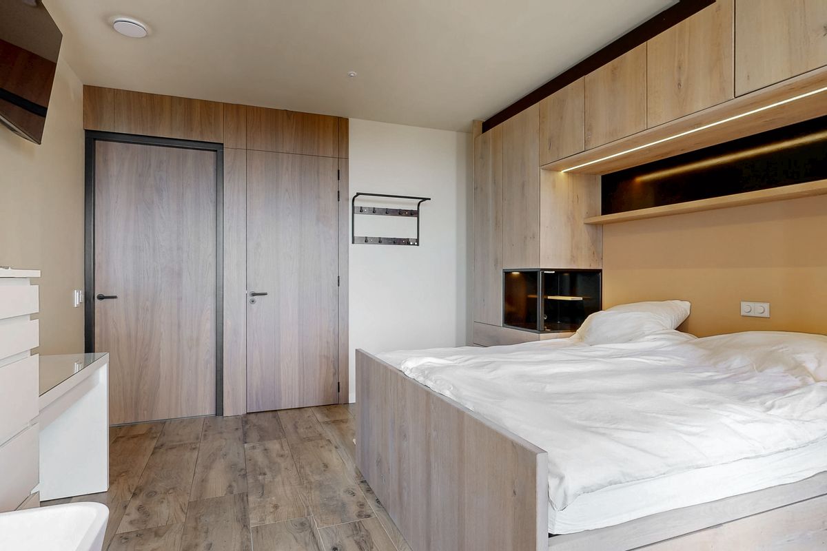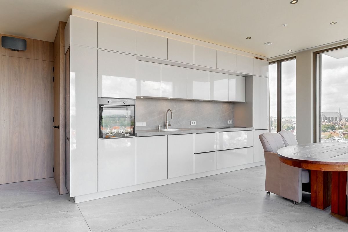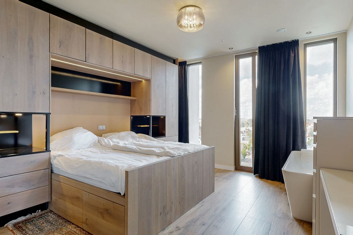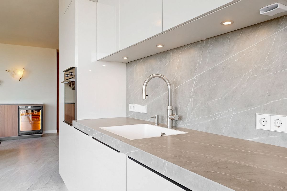 Het appartement beschikt over twee rustige en goed ingedeelde slaapkamers. De stijlvolle Bruynzeel-keuken is uitgerust met hoogwaardige inbouwapparatuur, waaronder een Quooker, stoomoven, Bora inductiekookplaat, vaatwasser en een royale koelkast. Een perfecte keuken voor iedereen die van koken houdt.